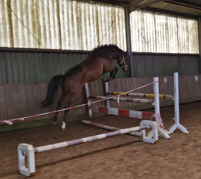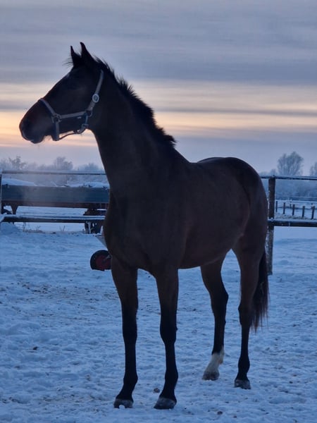 Verkaufe eine wunderschöne Holsteiner Stute, geboren im Jahr 2023. Sie erhielt die Fohlenprämie. Die braune Nachwuchsstute beeindruckt durch ihr elegantes Erscheinungsbild, guten Grundgangarten und ihr vielversprechendes Springtalent. Sie hat derzeit ein Stockmaß von 162 cm. Ideal für den Springreitsport und zukünftige Top-Athletin. Ihre Mutter Bezirksprämienstute 7yo United Way/Limbus ist bereits L SPF mit mir als Amateur platziert. Bei Interesse stehe ich gerne für weitere Informationen und eine Besichtigung zur Verfügung.
