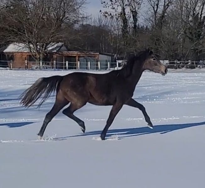 A highly promising mare from Colman / Cardino / Aljano / Heraldik xx, with a strong breeding and sporting background, is available to a caring new owner. She descends from the performance-oriented Casall line 890. Incorporated into the Holsteiner exceptional stallion Carthago, the mare promises, as her genetics suggest, great talent, excellent manners, and a cautious temperament. She also boasts above-average movement quality and a truly sweet and honest character. Having grown up in a small herd with me, she is naturally farrier- and loading-trustful and handled daily, making her suitable for anyone to ride. Born late in the season, she is now waiting for new challenges this year. Since I am discontinuing my show jumping breeding program, I am offering this mare. Please feel free to contact me personally for more information.