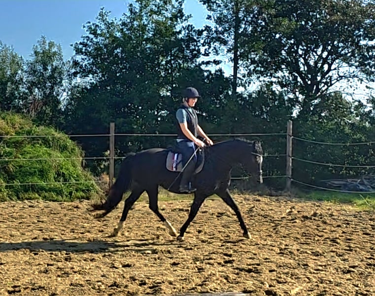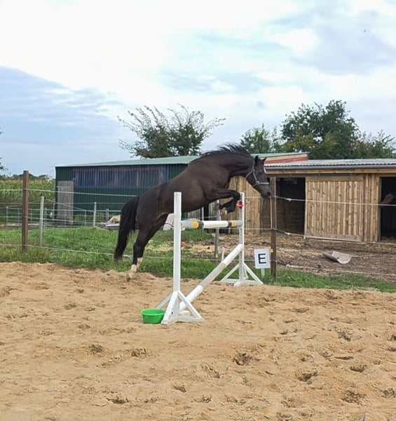 ☆Platz vor Preis ☆ Ich biete hier meine tolle, kleine 4-jährige Holsteiner Stute von Fidano x Quintero/Lorentin zum Verkauf. Sie ist bei uns geboren und zur Zeit 153cm groß. Sie wurde diesen Sommer schonend angeritten und zeigt sich super lernwillig. Es ist kein Notverkauf, doch aufgrund der Geburt unseres zweiten Kindes, merke ich, dass ich ihr nicht in dem Sinne gerecht werden kann, wie die es jetzt bräuchte. Wer einen tollen Partner sucht, der wird mit dieser Stute sicher glücklich, denn sie ist im Umgang, beim Schmied und beim Verladen wirklich artig. Aufgrund des Alters natürlich kein Anfängerpferd aber wer Lust auf so eine talentierte Stute hat, wird hier einen tollen Partner bekommen. Bei Fragen stehe ich gern zur Verfügung. Der Standort ist Schleswig-Holstein/Nordfriesland Für ein Vorreiten oder Probereiten erheben wir 25,-€ die beim Kauf natürlich erstattet werden. Eine AKU kann bei Kostenübernahme des Interessenten gern durchgeführt werden. Weitere Videos können gern erstellt und versendet werden. Die Stute steht bei uns im Offenstall mit zwei weiteren Stuten und einem Wallach zusammen.