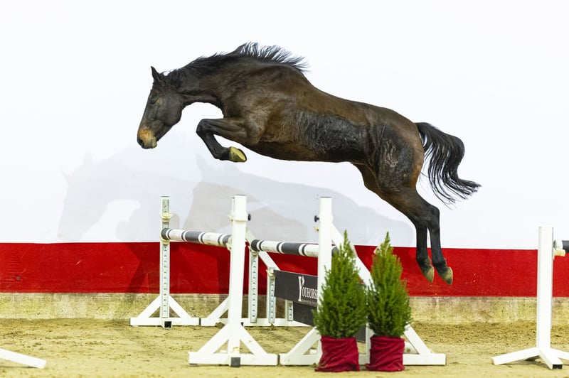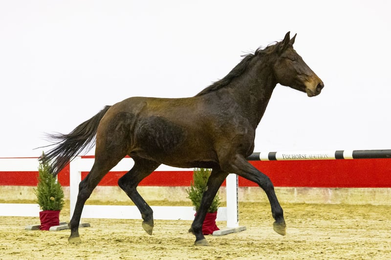 This young mare comes from an outstanding performance family and shows a lot of natural quality. She has a modern type, moves lightly and shows reflexes, technique and sufficient scope in free jumping. With proper training, she has all the ingredients to develop into a valuable sporthorse. Her sire Chopin VA, by Casall, competed successfully at 1.60m level and is recognised as an excellent sire, producing offspring with attitude, scope and rideability. Her granddam Carlista Z, by Carthago, has already produced two horses competing at 1.45m, confirming the strength and reliability of this damline. She comes from one of Germany’s largest and most reputable sporthorse breeders. She is completely unbroken and knows no more than a halter. Having lived exclusively in the field, she has had the time to grow correctly and develop strength in her body and legs. An honest and pure mare now ready to start her training. With her type, pedigree and natural jumping ability, she offers significant potential — both for sport and for future breeding.