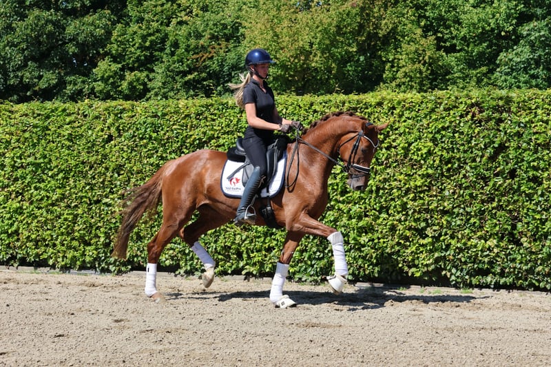 Przepiękna 4-letnia klacz od So Unique. Zupełnie spokojna i posłuszna, prezentuje się w codziennej pracy. To koń do szkolenia i cieszenia się nim.