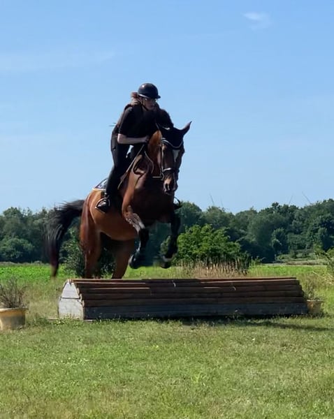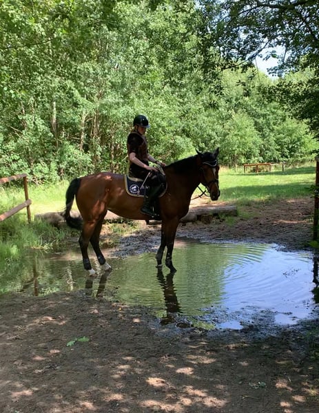 Odine du Ciel ist eine 2021-geborene Stute aus unserer Zucht. Sie ist charakterlich ein absoluter Goldschatz und für ihre 5 Jahre wirklich überdurchschnittlich brav und entspannt. Daher eignet sie sich perfekt als Familienpferd. Sie geht gerne ausreiten - sowohl alleine als auch mit anderen - und sie kennt es auch als Handpferd mitzukommen. In der Dressurarbeit macht sie toll mit und ist sehr angenehm zu reiten. Beim Springen ist sie unerschrocken, hat einen guten Zug zum Sprung und verzeiht auch Reiterfehler. Auch kleine Geländesprünge hat sie schon gemacht. Sie ist mit anderen Pferden sehr gut verträglich, brav beim Schmied und beim Tierarzt und lässt sich gut verladen. Odine war einmal auf dem Turnier und ist Springpferde-A* gelaufen. Sie hatte einen Chip, der operativ entfernt wurde. Röntgenbilder liegen vor. Sie hat einen Befund, weshalb sie günstig in gute Hände abzugeben ist. Keine Händler.