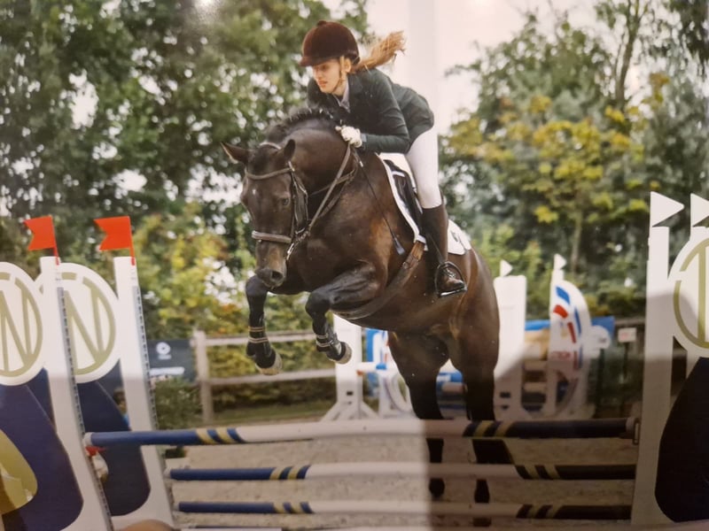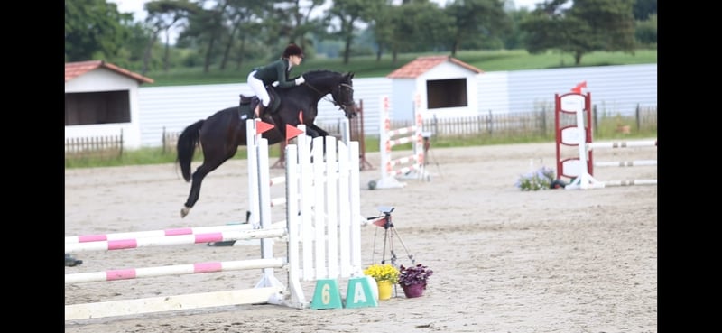 Frieda ist eine 6-jährige Stute von Chezarro aus einer Christo - Landgraf Mutter. Schonend 4-jährig angeritten ist Frieda in Springen und Dressur auf solidem A-Niveau. Leider bin ich gesundheitlich angeschlagen, weshalb sie immer wieder Pausen hatte und auch nur wenige Male auf Turnier vorgestellt wurde. Dies hat sie jedoch sehr artig gemacht und sie könnte sofort los. Friedas Passion ist eindeutig das Springen. Sie möchte mit gesundem Ehrgeiz immer auf die andere Seite, wird dabei aber nicht stark oder kopflos. Sie springt auf dicht oder auf weit. Verzeiht Reiterfehler und vermeidet eigene. Trotz begrenzter Erfahrung glänzt sie mit ausgesprochener Parcoursintelligenz und großem Mut. Guckig ist sie auch nicht. Unterbauten oder Wasser sind kein Thema. Dressur gehört nicht zu ihren Stärken, sie arbeitet zwar brav mit und ihre GGA sind vernünftig. Ein Lampentreter ist sie allerdings nicht. Außerdem fehlt es ihr bei der Dressurarbeit noch an Losgelassenheit. Es wird mit regelmäßiger Arbeit allerdings besser. Sie beherrscht die Grundlagen. Mit Seitengängen fangen wir gerade an. Im Umgang ist Frieda unkompliziert. Lässt sich gut verladen, kennt auch Auswärtstraining, benimmt sich beim Schmied & TA. Ausreiten waren wir noch nicht so viel. Am Strand zeigte sie sich aber entspannt und kopfklar. Lief brav durchs Wasser und sowohl hinten als auch vorweg. Sie steht nachts in der Box und tagsüber in einer gemischten Gruppe. Dort zeigt sie sich sehr sozial und unkompliziert. Artgerechte Haltung mit ausreichendem Auslauf und Sozialkontakten wünschen wir uns für sie auch zukünftig. Frieda ist ein absoluter Goldschatz und wird nur auf Grund meiner angeschlagenen Gesundheit verkauft. Allerdings ist sie erst 6 und damit nicht für Anfänger oder unsichere Reiter geeignet- Bisher war Frieda weder lahm noch verletzt. Eine AKU liegt jedoch nicht vor. Kann aber selbstverständlich gemacht werden. Weitere Videos können auf Anfrage versendet werden. Ein längeres Springvideo ist aus technischen Gründen nur als Link verfügbar: https://youtu.be/qbyYvZ-m9WY Probereiten ist selbstverständlich möglich.