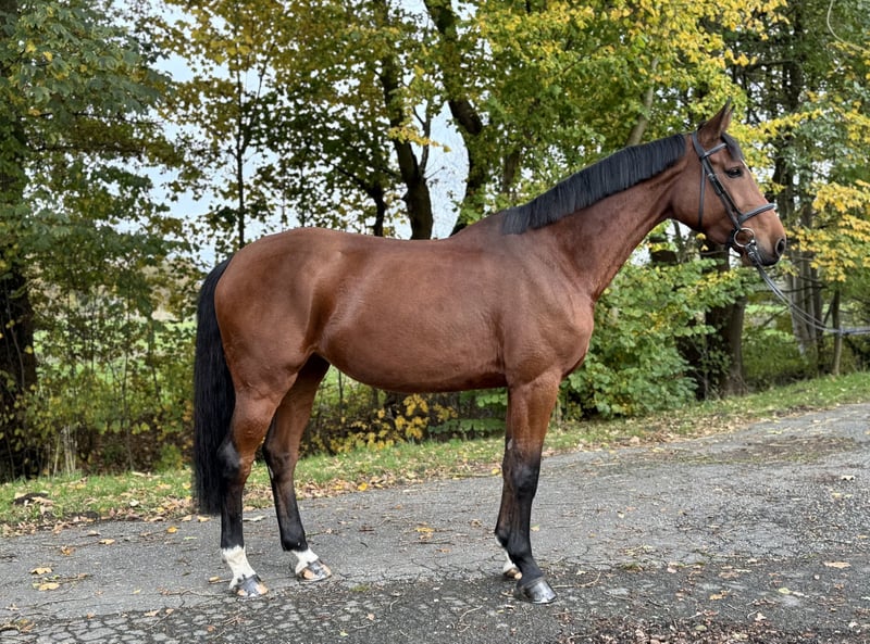 Miley is a six-year-old Holsteiner mare with an outstanding pedigree. She was born and raised on our farm. Miley is a versatile mare and a wonderful partner for fun in all equestrian disciplines. Whether in daily dressage training, jumping, gymnastics work, over poles, on the racetrack, climbing, or trail riding, she brings joy to her rider every day. She has been carefully and variedly trained, demonstrating confidence and willingness to perform. In show jumping, she impresses with her ability and already has experience in A-level show jumping competitions. She is the ideal partner for a rider who loves variety and is looking for a true all-rounder. Thanks to her excellent pedigree with top international bloodlines, she also appeals to breeders. Miley’s dam was also successful up to S-level in show jumping, highlighting the performance potential of the mare line. Of course, Miley is accustomed to daily turnout. She is familiar with the lunging system and the treadmill and loads onto the trailer without issues. A breeding inspection report is available. Miley is only for sale due to a necessary reduction in herd size because of our rider’s studies and will only be sold to suitable, responsible owners. Further information is available by phone at +49 173 9171091. Videos can be sent via WhatsApp, as uploading is currently not possible here.
