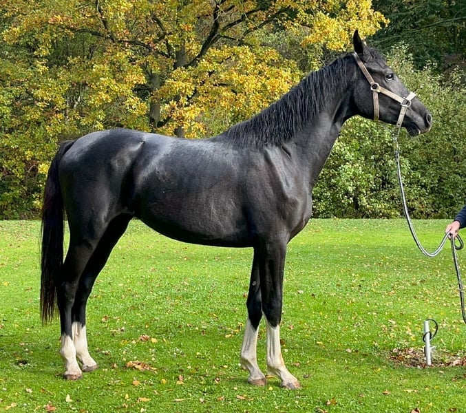 For sale: an elegant Holsteiner mare, born in 2020. This impressive black mare measures 172 cm at the withers and captivates with her striking appearance and promising pedigree. She is ideally suited for an ambitious rider or breeder who values quality and potential. I am happy to provide further information and arrange a viewing upon request. She is in foal to Crack (winner of the Bundeschampionat in Warendorf). Crack competes internationally in show jumping up to 160 cm and has achieved 5-star success under Richard Vogel. Foal expected in April 2026.