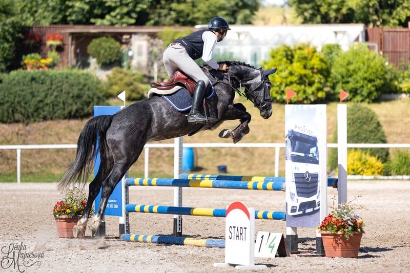 Baroness to rzucająca się w oczy klacz o wspaniałych zdolnościach skokowych, urodziła jedno źrebię w wieku 5 lat, rozpoczęła pracę pod siodłem kilka miesięcy temu - wciąż zielona, ale z ogromnym potencjałem. Rentgeny dostępne. Obecnie startuje w zawodach do 1m, gotowa na kolejny krok.