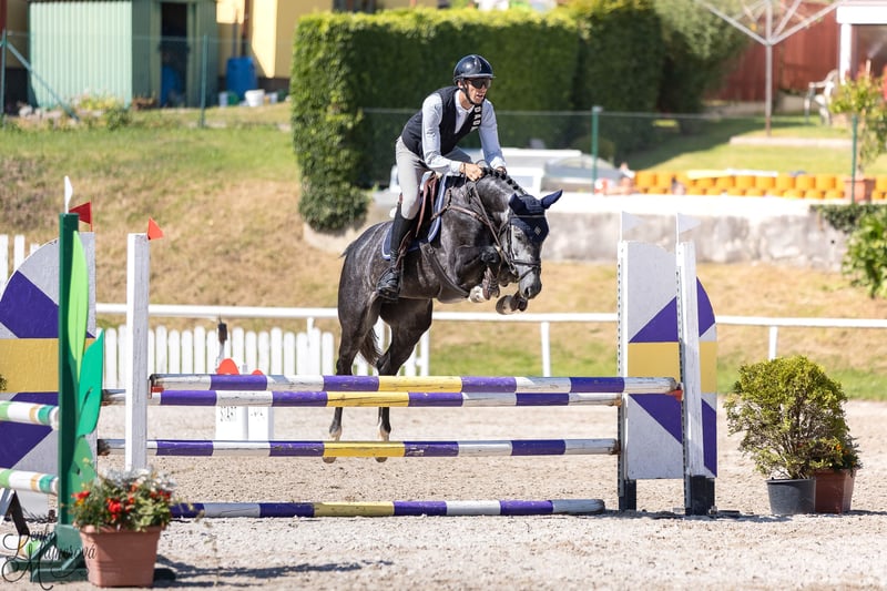 Baroness is een opvallende merrie met geweldige springcapaciteiten. Ze heeft als 5-jarige één veulen gegeven en is enkele maanden geleden onder het zadel begonnen - nog groen, maar met veel potentieel. Röntgenfoto's beschikbaar. Nu competities tot 1m en klaar voor de volgende stap.