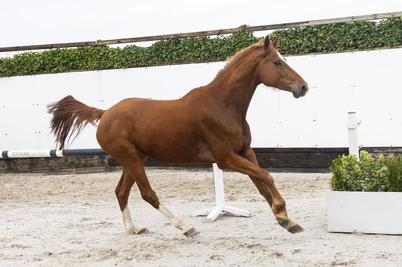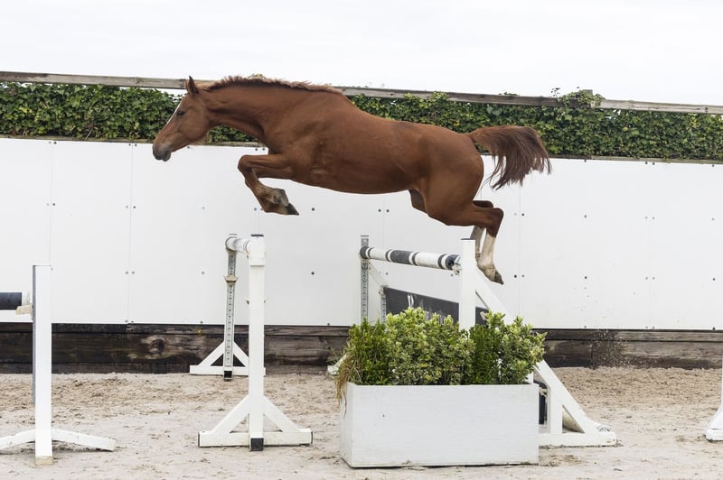 Excellent is a seven-year-old mare with a modern build and a light-footed jump. She has been used as a broodmare and can still be broken in, making her suitable for both sport and breeding. She shows a lot of blood on the jump, is quick off the ground and careful, with a good finish. Suitable for both sport and breeding. With Emerald van ’t Ruytershoff as her sire and Quintago as her dam’s sire, Excellent has a very strong pedigree foundation. Emerald is now recognised worldwide as a producer of modern, reliable jumpers with scope and attitude. Her granddam Ciebura VA has already produced several sporthorses, including the 1.45m jumper Camo. This mare line is also notable for tracing back to the famous mare Stella, a foundation mare known for producing numerous high-level showjumpers. Excellent already shows natural quality and still has plenty of room for further development. A promising sport mare with a strong pedigree and potential — both for sport and for future breeding.