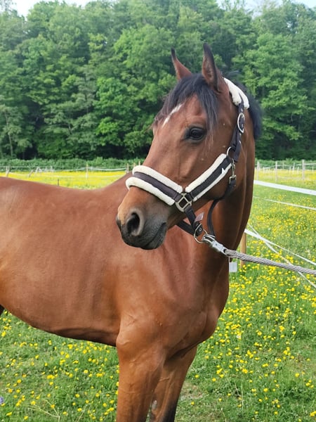 Voici une jument très attachante et sociable qui souhaite toujours plaire. Dans le travail quotidien, elle est toujours motivée et désireuse d'apprendre, tout en étant très fine à monter. Pour équilibrer l'entraînement sur le manège, nous l'emmenons régulièrement en extérieur, où elle se comporte bien, que ce soit seule ou en groupe. Lors des compétitions, elle reste très détendue dans toutes les situations, que ce soit lors du jugement sur le van ou en attendant entre deux épreuves. Dans le parcours, elle veille à le réaliser sans fautes et pardonne également les petites erreurs du cavalier. Un cheval idéal avec beaucoup de potentiel pour différentes exigences. Des radiographies sans constatation sont disponibles.