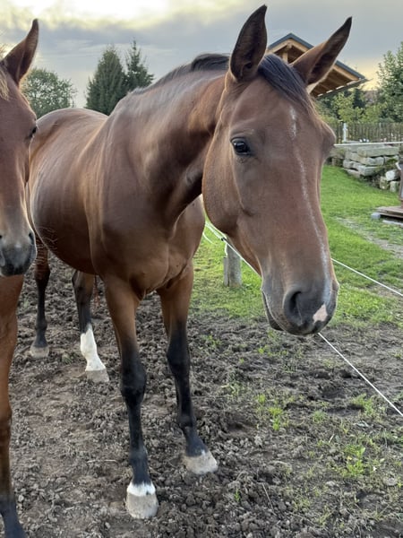 Na sprzedaż wystawiam moją klacz hodowlaną po Casall x Quo Vados I x Lux Z. Urodziła już bardzo sportowe, nowoczesne źrebię. Przy tym bez problemu ją przyjęła i odchowała. Z bezpośredniej linii matczynej pochodzi kilka typowych i odnoszących sukcesy sportowo koni (holsztyński rodowód 5382). Klacz jest jeżdżona i była klasyfikowana w skokach przez przeszkody w kategorii A. Ze względu na kontuzję od tego czasu nie była już używana w sporcie. Posiada aktualny przegląd techniczny z 2022 roku (wynik: OCD kolano). Chętnie udzielę więcej informacji i wyślę filmy prywatnie!
