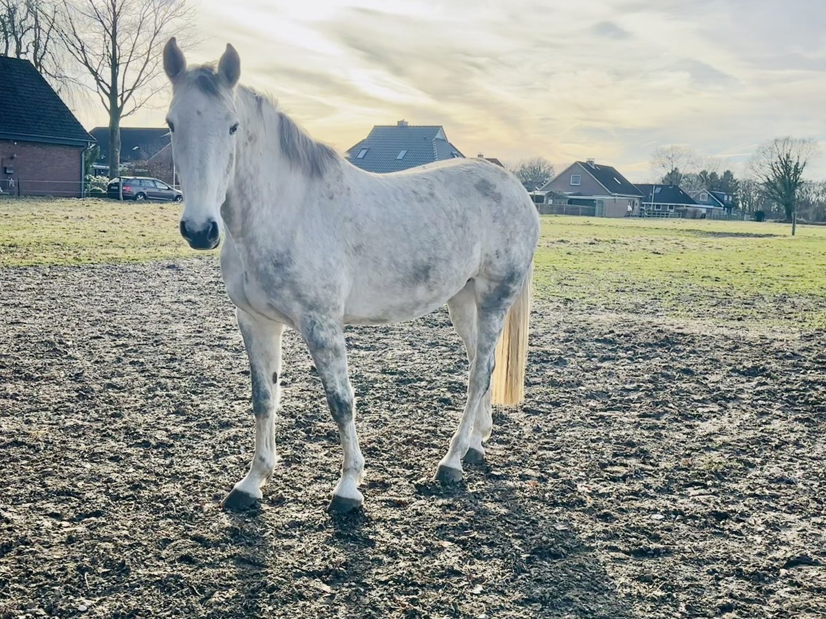 For sale is an 8-year-old grey mare of excellent quality and ideal size for breeding. She descends from a strong dam line, with offspring successfully competing up to S-level in sport, and was herself awarded district premium mare status. The mare impresses with a very correct, harmonious conformation, combined with sufficient size and good compactness – ideal prerequisites for modern sport horse breeding. A particular highlight is her proven progeny: her foals are characterized by correctness, quality, and an above-average good temperament. One of her foals has recently been confirmed with a clean, fresh veterinary examination – with no findings. Her exceptionally well-behaved, balanced, and completely uncomplicated character makes her not only a pleasure to handle daily but is also reliably inherited. Due to an injury in foalhood, which resulted in a club foot (now well-treated), she is offered exclusively as a broodmare. However, light riding may be possible under certain conditions. A very interesting offer for breeders who specifically value rideability, strong character, and secure performance lineage.