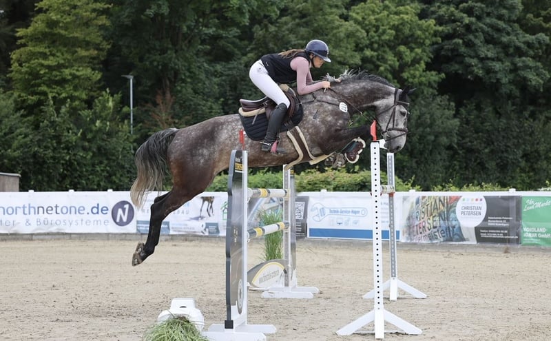 **Verkaufsanzeige: Holsteiner Stute** Zum Verkauf steht unsere Holsteiner Stute, geboren im Jahr 2017. Aktuell M-Platziert und S mit einem Fehler gelaufen. Sie ist eine wahre Lebensversicherung im Parcour. Springt immer und ist nicht guckig. Dabei bringt sie genug Vermögen mit für die höheren Klassen! Sie wird im Parcour auf normaler Wassertrense geritten. Dressurmässig läuft sie sicher alle L-Lektionen, wurde aber nie groß gefördert. Die Stute ist brav im Umgang, gut erzogen und hat ein angenehmes Temperament. Sie ist sowohl für den erfahrenen Reiter als auch für den ambitionierte Reiter geeignet, die ihre Fähigkeiten im Springen weiterentwickeln möchten. Das Pferd wurde regelmäßig entwurmt, geimpft und dem Hufschmied vorgestellt! Eine aktuelle AKU inklusive Rücken liegt bereits vor. Bei Interesse oder für weitere Informationen stehe ich Ihnen gerne zur Verfügung. Besichtigungen und Proberitte sind nach Absprache möglich.