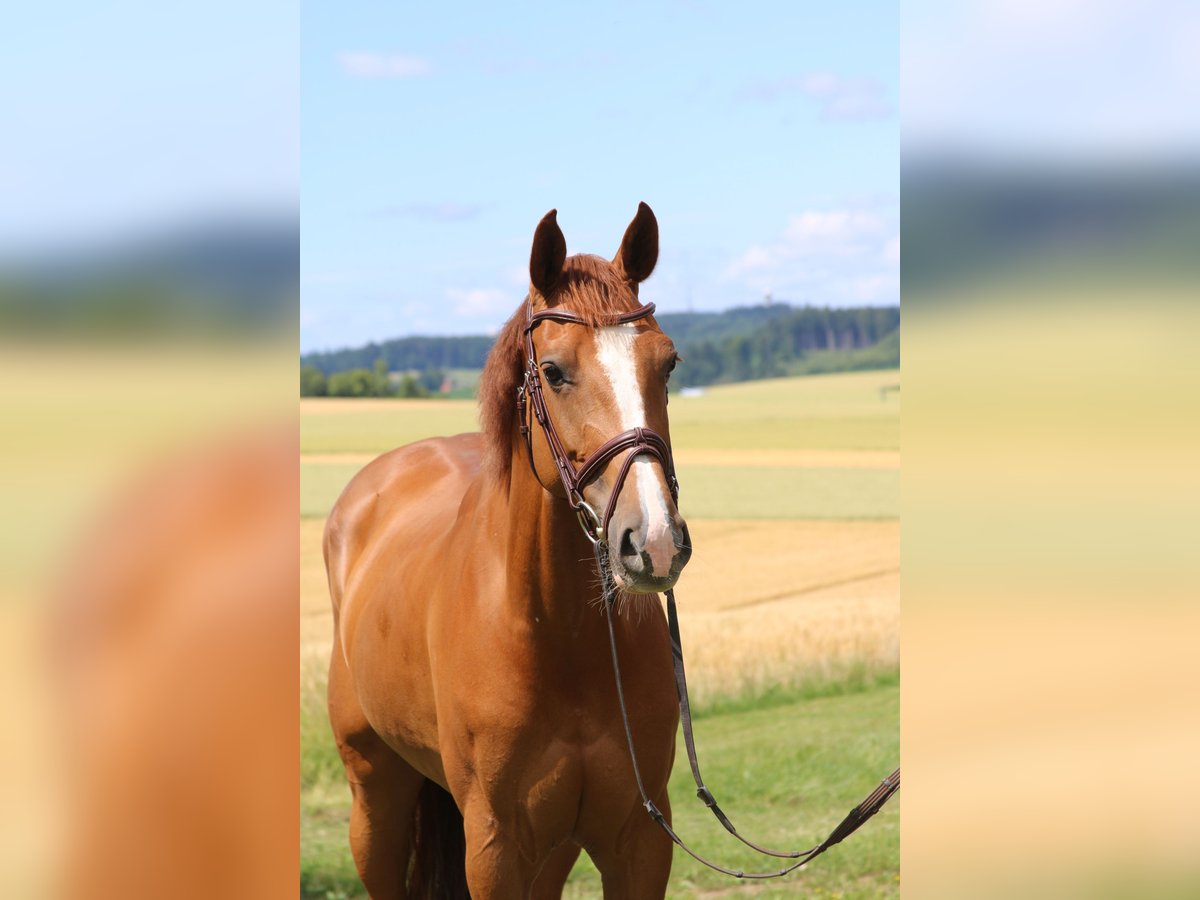 Wunderschön gezeichnete Fuchsstute mit Top-Charakter und sportlicher Qualität Diese außergewöhnlich typvolle Fuchsstute begleitet uns seit Beginn ihrer Sportkarriere und hat sich in dieser Zeit als absolut leistungsbereite und ehrliche Partnerin bewiesen. Sie überzeugt nicht nur durch ihre elegante Erscheinung und ihre ausdrucksstarke Zeichnung, sondern vor allem durch ihren hervorragenden Charakter: stets motiviert, klar im Kopf und mit großer Freude an der Arbeit. Im Parcours verfügt sie über Erfahrung bis 1,30 m und kann zahlreiche Siege und Platzierungen in der mittelschweren Klasse vorweisen. Sie ist sehr angenehm zu reiten, fein an den Hilfen und vermittelt ihrem Reiter ein sicheres, positives Gefühl. Ob im Training oder auf dem Turnier – sie zeigt konstante Leistungen, Übersicht am Sprung und echtes Kämpferherz. Dabei bleibt sie immer ehrlich und leistungsbereit. Für diese besondere Stute wünschen wir uns einen wertschätzenden Platz, an dem sie weiterhin gefördert wird und gleichzeitig als echtes Herzenspferd geschätzt wird. Sie ist eine Partnerin, mit der man wachsen, Erfolge feiern und einfach Freude haben kann. Bei ernsthaftem Interesse freuen wir uns über eine persönliche Kontaktaufnahme.