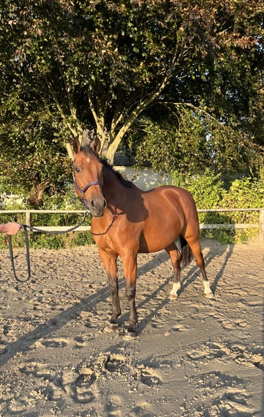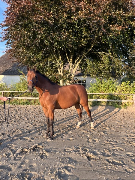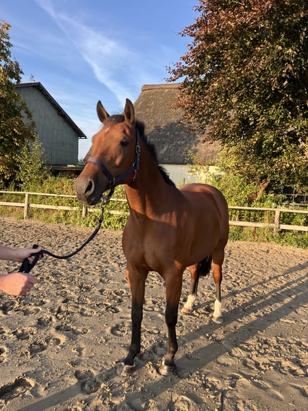 Zum Verkauf steht eine 9-jährige Holsteiner Zuchtstute von Cascadello II x Landlord x Tambur. Für 2026 ist sie tragend von Madness (Kannan x Emerald), der unter Hannes Ahlmann hocherfolgreich ist. Die Stute ist mit einem hervorragenden Interieur ausgestattet und überzeugt mit ihrem korrekten Fundament. Vor ihrem ersten Zuchteinsatz lief sie 5jährig einige Springpferdeprüfungen und zeigte sich auch hier unkompliziert, nervenstark und auffällig rittig sowie mit einem sehr guten Sprungablauf ausgestattet. Aufgrund einer Verletzung ist sie jedoch nicht mehr reitbar! Ihre Qualität als Zuchtstute hat sie bereits unter Beweis gestellt und 2024 ein gesundes, typstarkes Fohlen von Duplexx gebracht, das vor Ort besichtigt werden kann. Die Stute selbst stammt ebenfalls aus einer hervorragenden Familie: Gleich drei ihrer Geschwister laufen sehr erfolgreich im Sport auf 1,55/1,60m Niveau. Die Stute kennt Stall- und Weidehaltung und ist herdenverträglich.