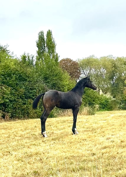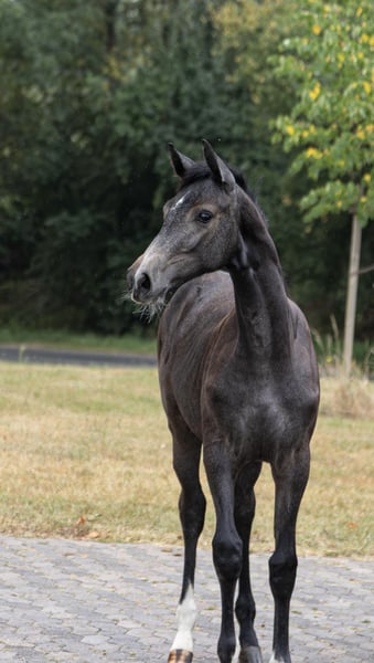 Kucyk jest wizualnie i hodowlano prawdziwym wyróżnieniem. Od razu otrzymał Holsztyńską premię dla źrebiąt i może pochwalić się sukcesami także w swojej rodzinie. Na przykład babcia oraz ciocia klaczy (obie w naszym posiadaniu) odnoszą sukcesy sportowe aż do klasy Grand Prix. To źrebię ma przed sobą wszystkie możliwości, idealne dla tych, którzy szukają konia na przyszłość do ambitnych celów. W razie zainteresowania chętnie proszę o kontakt telefoniczny.
