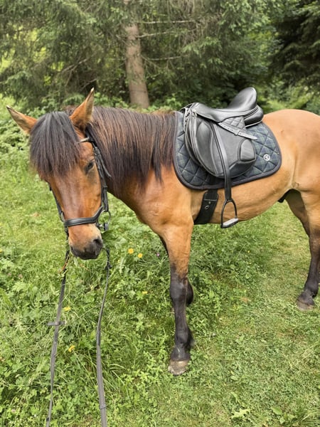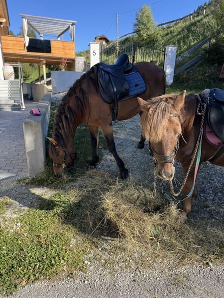 Huzule | Wallach | 9 Jahre | 143 cm | gebisslos geritten | Standort: Salzburg-Land | Es gibt Pferde, die man reitet – und es gibt Pferde, mit denen man durchs Leben geht. Mein Huzulenwallach gehört zur zweiten Sorte. Er ist ein ehrliches, naturverbundenes Pferd, das sein Glück im Gelände findet. Gemeinsam über Wiesen traben, durch Wälder streifen, am langen Zügel durchatmen – das ist seine Welt. Wenn er seinem Reiter vertraut, geht er auch alleine souverän ins Gelände, aufmerksam, zuverlässig und fein an Stimmkommandos zu reiten. Er kann sowohl mit Trense als auch gebisslos geritten werden, fühlt sich mit dem Hackamore aber deutlich wohler und arbeitet damit feiner mit. Er ist gesund, klar im Kopf und liebt Abwechslung: kleine Sprünge, Bodenarbeit, neue Aufgaben – all das macht ihm Freude. Nur auf dem Platz möchte er keine Runden drehen – das ist einfach nicht „sein Ding“. Ich wünsche mir für ihn jemanden, der genau das schätzt: ein Freizeitpartner, der Freude an gemeinsamen Ausritten hat. Er kann am Reitplatz auch von Anfängern geritten werden, ist aber kein reines Kinderpferd. Einzig alleine im Gelände benötigt er einen souveränen Reiter, dann ist er ein absolut verlässlicher Begleiter. Zu zweit ist er im Gelände total unerschrocken und brav. Perfekt für größere Kinder, leichte Erwachsene, Wiedereinsteiger. Weil mir aktuell die Zeit fürs gemeinsame Ausreiten fehlt und ich mich reiterlich in eine andere Richtung entwickle, suche ich für ihn einen Lebensplatz, an dem er das tun darf, was er am meisten liebt: mit seinem Menschen durchs Gelände streifen. Zubehör, das auf ihn abgestimmt ist, kann bei Interesse gerne mitgegeben werden.