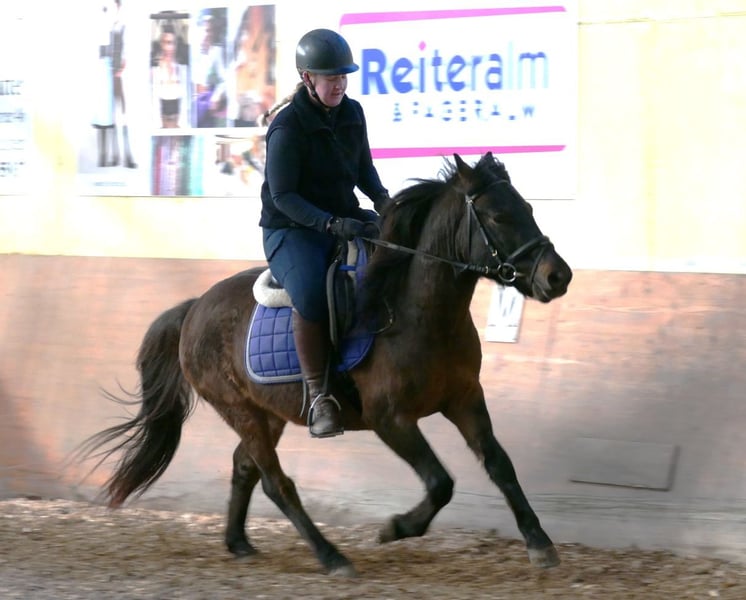 Huzule Wallach 5j. Dunkelbraunfalbe Stm. 143cm. rahmiger, kompakter, hübscher Typ mit guten GGA und viel Ausstrahlung; geritten und gefahren; sicher im Gelände, er besticht durch seine Selbständigkeit und seinen Mut bei der Arbeit; gehorsam im Umgang, - Ein zukunftspferd, der auf der Suche nach seinen Bezugspersonen ist!, schmiede u verladefromm, für Offenstall geeignet, in der Herde verträglich