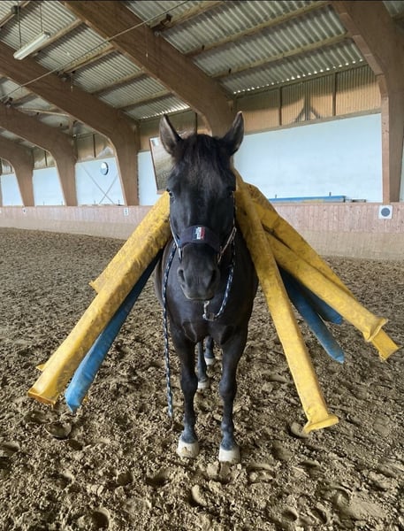 Superbe cheval / jeune cheval de cinq ans en étape avancée de sa formation. C'est à contrecoeur que nous cherchons une nouvelle famille aimante pour notre Huzul de cinq ans. C’est un véritable coup de cœur : incroyablement gentil, proche de l’homme et ouvert à beaucoup de choses – il ne s’agit en aucun cas d’une vente d’urgence ! Taille au garrot : 1,45 m Poids du cavalier recommandé : jusqu’à 65-75 kg Couleur : Noir Crinière & queue : Noir-brun Il est légèrement monté et maîtrise le pas, le trot et le galop sur commande. En selle, il est absolument doux et ne montre aucun vice – toutefois, il nécessite une personne avec une main ferme, claire et expérimentée, adaptée aux jeunes chevaux. Avec une conduite calme mais ferme, il travaille de manière fiable et motivée. Il peut être monté aussi bien sans mors qu’avec mors ; l’acceptation de la selle et du filet ne pose aucun problème. De type plutôt décontracté, il apprécie la compagnie d’un humain qui le motive, le stimule régulièrement et lui offre de la variété. Il n’est pas adapté aux débutants. Il demande une personne qui sait comment gérer ce type de poney, avec douceur mais aussi fermeté. Sur demande, je peux fournir tout son équipement très complet et de haute qualité (selle, filets, tapis, couvertures, et bien plus encore) contre un supplément. • Pas de vente à des revendeurs ou intermédiaires. • Connaît le box et le paddock – dans le troupeau, il occupe une position basse, calme et détendue. • Ne sera pas vendu en box. Il doit trouver une personne qui l’aime, le soutient et soit là pour lui sur le long terme. Si vous êtes sérieusement intéressé, je serais heureux de recevoir un message et de faire sa connaissance. Il passe facilement dans une remorque. Certificat de ferrure, vaccins et autres documents à jour sont disponibles. Pour toute demande ou information complémentaire, veuillez me contacter par message ou au : 0170-6835012