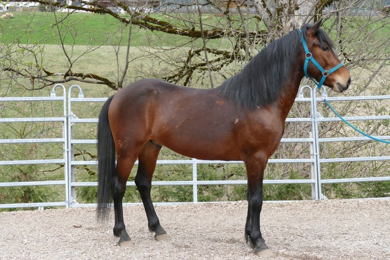 Huzule Gelding, 6 years old, dark buckskin, 14.7 hh. Compact, very attractive type with lots of presence and an excellent character; driven single and tandem – also suitable for road traffic; confident and fearless in the terrain; easy to handle, very friendly and people-oriented. A dream horse for leisure riding! Shoeing and loading safe, suitable for open stalls, compatible within the herd.