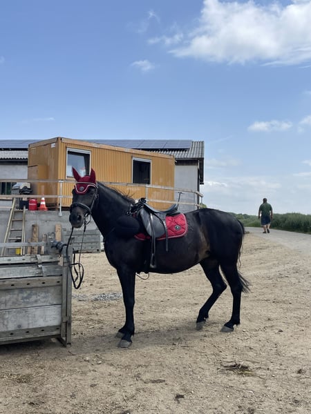 For sale is a 10-year-old, chestnut mare born in 2015. Dakota is a crossbreed between an Arabian and a Hucul pony, standing at 14.2 hands, making her suitable for most riders. She is very eager to learn and curious, always attentive to do everything correctly. In groundwork, she is highly focused and always approaches her handler with respect. She also enjoys free work, which she finds very rewarding. She is familiar with all three gaits, both in the arena and on rides outdoors. She also enjoys jumping. However, she is not suitable for beginners, as she needs to build a lot of trust in her handler first. Once she has that trust, she is a pleasure to ride and handle. Dakota has a lot of spirit and energy, which can be managed well with the right approach. Koko is very sensitive, so she requires a calm, patient, and experienced rider. She is barefoot and lives in a herd in an open stable. She is not suitable for riding school use. Serious inquiries are welcome.