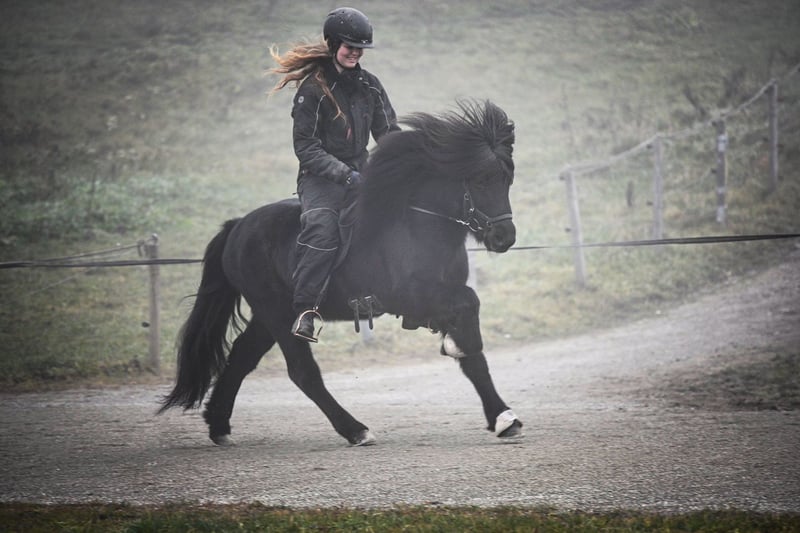 Hermann frá Byskogi Hengst, Rappe, 2011 geboren, 140cm Hermann ist ein sehr feiner und sensibler Vierganghengst. Er ist im Umgang gar nicht hengstig und sehr brav und wird bei uns auch zusammen mit einem anderen Hengst gehalten. Hermann sucht seinen Menschen, der viel Gefühl hat und ihm die Sicherheit geben kann. Dann gibt er einem auch ein ganz tolles Reitgefühl und macht wirklich sehr viel Spaß. Er hat sehr viel Tempovarianz im Tölt, ist immer taktklar bei sehr guten Bewegungen, auch seine Grundgangarten sind von sehr guter Qualität. Aktuell ist er nicht trainiert. Sein Vater ist der bekannte Ehrenpreisträger Herjolfur frá Ragnheiðarstöðum, seine Mutter ist die Elite geprüfte Stute Prydi frá Feti. Seine bisherigen Nachkommen zeigen sich sehr vielversprechend. Zwei seiner Söhne sind bereits gekört und der erste wird diesem Herbst angeritten. Hermann ist ansonsten komplett durchgecheckt, gesund und ekzemfrei. Hermann sucht ein für immer Zuhause bei einem Menschen, der ihn versteht und auf seine Probleme gut eingehen kann. Er wird nicht als Anfängerpferd oder in unerfahrene Hände verkauft! Platz vor Preis. Standort: 88273