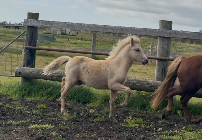 Markús is a beautiful palomino colt with a lot of charisma and friendly character. He shows natural tölt and good movements already at his young age, making him a very promising future riding or competition horse.He grows up in natural conditions in a large herd on our farm in Iceland, which ensures strong health, correct development and good social behavior. Markús will be weaned in November 2025. Boarding at our farm until export is possible. Transport to Europe can be arranged.