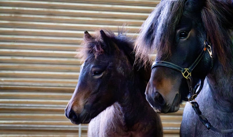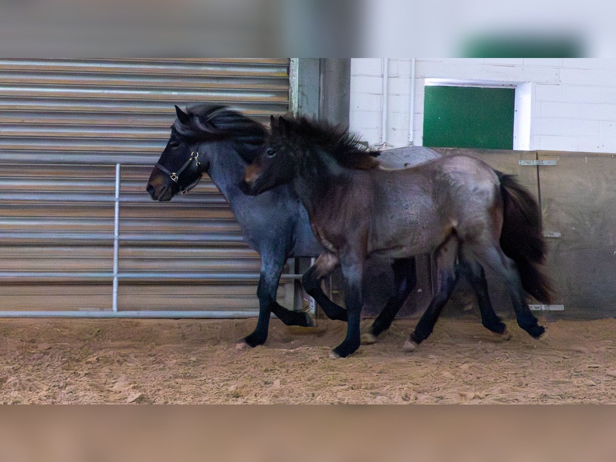 Skelmir vom Nebelblick (dt. Schelm, Lausbub) geboren am 14.05.2025 ist ein sehr aufgewecktes neugieriges Hengstfohlen in Sonderlackierung. Er ist sehr menschenbezogen und hat ein freundliches Wesen. Er ist in der Sonderfarbe Dunkelbraunfarbwechsler was via Labogen bestätigt wurde. Er hat bereits alle 5 Gänge freilaufend gezeigt wobei der Tölt sein Lieblingsgang ist. Der Galopp ist wunderbar bergauf gesprungen. Ich kann mir ihn später als Luxus Freizeitpferd vorstellen oder auch im Sport. Er ist seit Geburt gesund, wird regelmäßig entwurmt und wächst mit anderen Fohlen in Weidehaltung mit Mineralfutterversorgung auf. Auch die Hufe werden nach Bedarf gepflegt. Eine weitere Aufzucht ist bei Absprache möglich. Er steht auf dem Recherbusch in Blankenheim. Exterieur 8,1 Charakter 7,9 Gang 7,8 Gesamtnote 7,91 - Kräftiges gut entwickeltes Fohlen mit lockerem Trab und Tölt. Gute mittlere Bewegung, mittlere Tempofähigkeit und starkem Fundament - M: Töfranótt frá Hrafnkelsstöðum (7,79) -Dunkelbraun Farbwechsler mit Splash- MV: Bjálmi frá Bjálmholti -Rappscheck Farbwechsler- V: Fannar vom Recherbusch (8.03) -Weißsabino mit Genotyp W8/Sp- Vv: Pegasus vom Recherbusch (8.05) -Fahlrappe mit Genotyp W8-