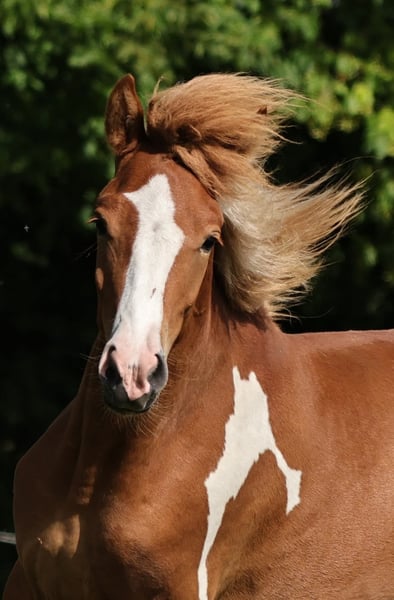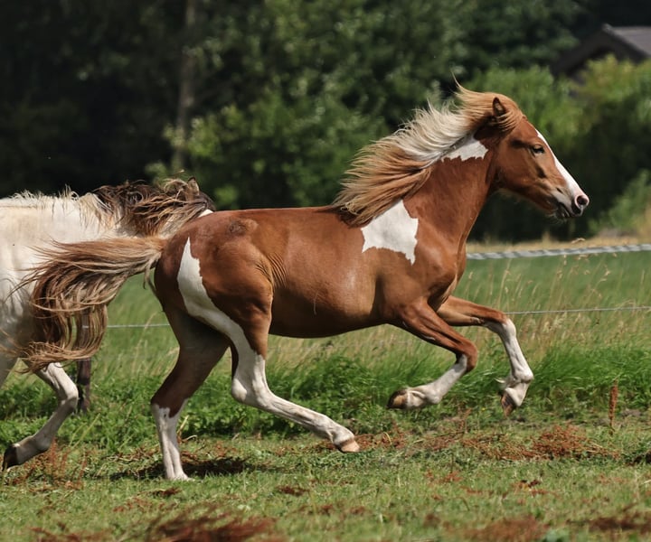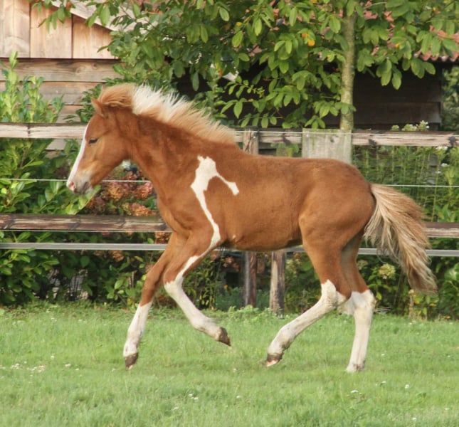 schön gezeichneter Fuchsscheckhengst