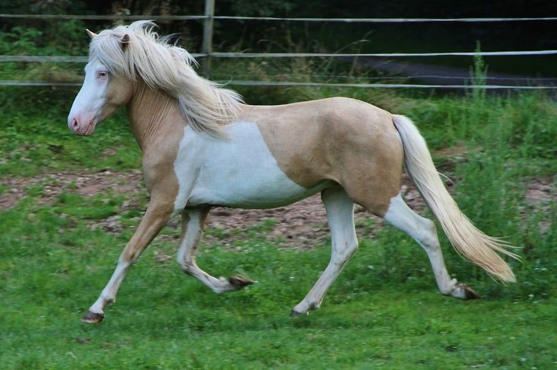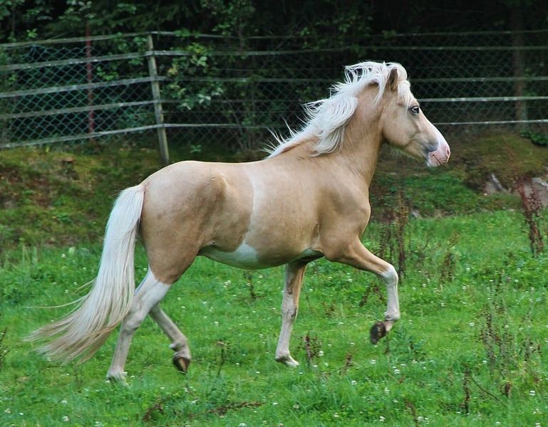 Dreymandi ist ein überaus schicker junger Palominohelmscheckwallach mit blauen Augen der durch seine seltene Farbkombination überall hervorsticht. Im Sommer wunderschön Goldpalomino ist er im Winter etwas heller vom Grundton aber genauso wunderschön. Besonders hübsch ist auf der einen Seite seine Sparzeichnung während die andere Seite etwas großzügiger bedacht ist . Mit seinen 3 Jahren ist er noch nicht fertig entwickelt und kann ein Endmaß von max. 139 Stm erreichen dabei ist sein Gebäude eher quadratisch robust gehalten. Charakterlich ein unkomplizierter freundlicher unartenfreier Schatz kennt er das jungpferdemäßige Händling und ist auch Hufpflege- und Verladefromm. Bis dato ist er gesund, Ekzemfrei, regelmäßig entwurmt, geimpft und Hufe gepflegt. Er ist gut sozialisiert in einer altersgemischten Jungstruppe aufgewachsen und steht auch derzeit ganz unproblematisch in dieser. Durch seinen Aufwuchs ist er die meisten Umweltfaktoren gewöhnt und begegnet diesen in der Regel offen und Schreckfrei. Als Fünfgänger zeigt er tagesformabhängig alle Gänge, dabei stechen seine guten, raumgreifenden und sicher vorhandenen Grundgänge besonders hervor. Immer wieder zeigt er Freilaufend auch Tölt und Pass mit gutem Tempo, Takt und schönen Bewegungen. Er bringt alles mit um später mit entsprechender Ausbildung das perfekte Allround Reitpferd für die ganze Familie inklusive Kinder zu werden. Sein Vater Sindri und seine Mutter Gletta sind erprobte sichere Allround Reitpferde für Jedermann und alle Gelegenheiten, egal ob gemütlich oder flott ins Gelände, Kurse, Turniere etc. auf sie ist immer Verlass egal ob der Reiter erfahren oder Anfänger ist. Dreymandi hat also die besten Voraussetzungen um als Nachwuchsreitpferd groß und klein zu Begeistern. Gerne kann er angeschaut und persönlich Kennengelernt werden, ein Umzug in ein neues Zuhause ist jederzeit möglich. Gerne kann der potentielle neue Besi eine Ankaufsuntersuchung durchführen lassen. Auch ein Transport ins neue Zuhause ist gegen Kostenübernahme innerhalb Deutschland möglich. Wir wünschen uns für ihn ein möglichst dauerhaftes Zuhause, dennoch ist ein Verkauf an einen Wiederverkäufer der ihn noch etwas Aufzieht und später nach Ausbildung weiterverkauft nicht ausgeschlossen, da dies ein späteres für immer Zuhause ja nicht ausschließt. Bei echtem Interesse freue ich mich auf nette Anfragen.