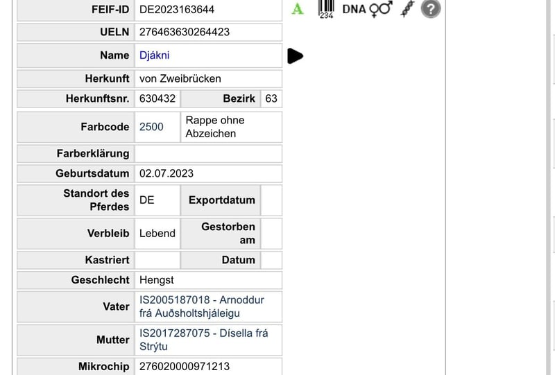Zum Verkauf steht ein Fohlen/ Absetzter. Er wurde bei uns an der Fohlenbeurteilung gezeigt und konnte hierbei super abschneiden. Exterieur: 7,90 Interieur: 8,10 Gänge: 7,90 Gesamt: 7,94 Richterspruch: Hoch aufgerichtetes Fohlen mit gleich viel Trab und Tölt, schnellen Reaktionen und guter Lauftreude bei guter Bewegungsenergie und Ausdruck. Er wird nächsten Monat abgesetzt. Gerne bei uns melden.