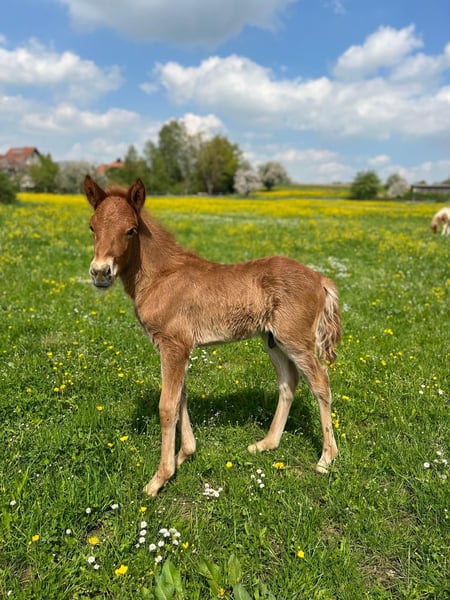 Ljómi vom Seebühl DE2022184421 Ljómi ist ein großer, umgänglicher Fünfgänger. Er zeigt freilaufend alle fünf Gänge klar getrennt mit mittlerer Bewegung und einem sehr guten Körperbewusstsein. Er ist aktuell noch Hengst. Mit ihm wurde dieses Jahr mit dem Einreiten angefangen. Er steht zurzeit mit einem anderen Junghengst zusammen. Ekzemfrei Fohlenprüfung: Exterieur: 8,00/ Charakter: 7,90/ Gänge und Bewegung: 7,90// Gesamt: 7,93 (Prämienfohlen)