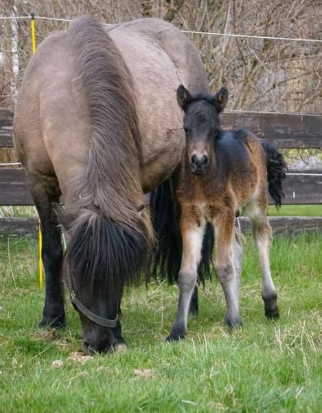 Bjarni - unser Herzensbrecher auf vier Hufen Wir verkaufen unser Islandhengstfohlen Bjarni vom Buchbichl, geboren am 22.03.2026. Bjarni begeistert mit seinem feinen Charakter, Intelligenz und großer Menschbezogenheit. Neugierig, freundlich und sehr aufgeschlossen sucht er den Kontakt zum Mensch, ohne dabei aufdringlich zu sein. Ein Blick in seine rehbraunen Augen, und er wickelt alle um sein Hüfchen. Bjarnis Mutter ist eine fleißige und allzeit zuverlässige Stute, die jederzeit gefallen möchte, ganz egal ob im Gelände, als souveränes Anlernpferd für Jungpferde als Handpferd, oder als Reitpädagogik-Pferd im Umgang mit selbst den kleinsten Reitern. Sein Vater Þjarkur frá Kvistum ist ein Fizo geprüfter Allrounder, der Klein und Groß im Gelände oder auf dem Turnierplatz glücklich macht. Er punktet jedoch nicht nur mit seinem goldenen Charakter sondern vererbt seinen Kindern auch sein kräftiges Fundament mit stabilen Gelenken und den besten Reitpferdepoints. Bjarni sehen wir als zukünftigen Freizeitpartner der einen fleißigen, klugen und vor allem töltenden Freund sucht. Bis zu seinem Auszug im Oktober hat er alles gelernt, was man als Jungspund so können muss - also das Fohlen ABC - von A bis Z. Er wird regelmäßig entwurmt, ist gut mineralisiert und genießt ein unbeschwertes aufwachsen mit Kumpels in seinem Alter und weiteren Pferden verschiedenen Alters. Sehr gerne kann Bjarni nach dem Absetzen bei uns zur weiteren Aufzucht in der Junghengstgruppe bleiben. Die Junghengste genießen Sommer wie Winter auf mehreren Hektar Koppeln, mit 24/7 Heu aus eigenem Anbau und Spielgefährten unterschiedlichen Alters.