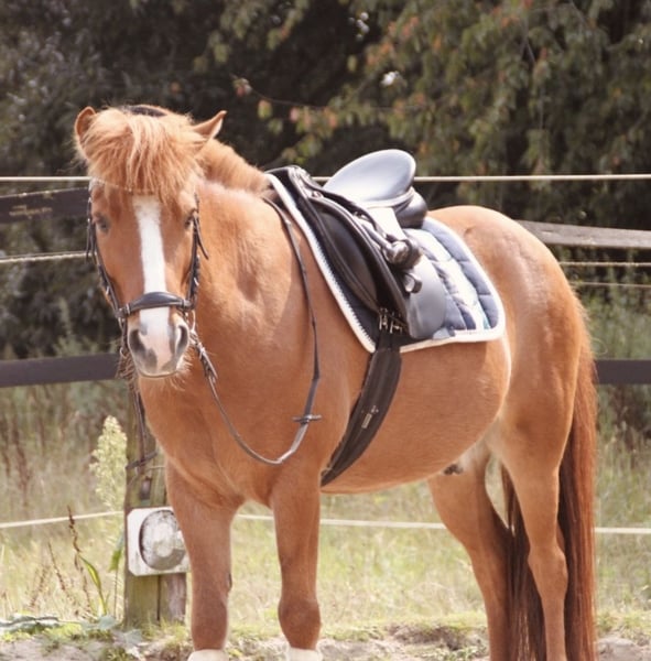 Met pijn in het hart zoek ik een nieuw thuis voor mijn 10-jarige Islandhengst Bilbo. Hij is een 135 cm grote, stevig gebouwde voskleurige hengst met veel uitstraling en een sterk karakter. Bilbo is goed getraind, drietalig, loopt mooi aan de teugel bij goede hand, heeft veel springpotentieel en vooral veel go. Hij gaat graag het bos in, houdt van buitenritten en wandelingen, en werkt ook heel graag vanaf de grond – hij kent vele oefeningen en tricks. Bilbo heeft een sterke persoonlijkheid en test zijn omgeving steeds weer. Daarom heeft hij een rustige, ervaren en consequente eigenaar nodig die hem vriendelijk, maar duidelijk laat zien waar de grenzen liggen. Hij is nooit boos, blijft goed handelbaar en duidelijk in zijn communicatie, vooral als je serieus met hem wilt werken of hem uitdaagt. In de omgang is hij erg lief, vooral ook met kinderen en honden en katten; hij is een plezierig pony waarmee je alles kunt doen. Momenteel staat Bilbo in boxen met dagelijks paddocktijd in een hengstenhengestel van ongeveer 20 paarden. Hij kent ook een buitenstal, 24/7 buiten en gemengde groepen. Gezondheidsmatig is hij absoluut probleemloos: hij is regelmatig gevaccineerd, nog nooit ziek of kreupel geweest en wordt probleemloos hoefsmidvrij gehouden. Bilbo staat in de regio Kleef en wordt om persoonlijke redenen afgestaan. Voor mij is een ervaren, liefdevol en langdurig thuis erg belangrijk, waar zijn karakter gewaardeerd wordt en zijn potentieel verder wordt gestimuleerd. Ook voor kinderen en minder ervaren ruiters zou Bilbo geschikt kunnen zijn, mits er een tweede persoon is die hem begeleidt en controleert. Groetjes, bij vragen en interesse hoor ik graag van je.