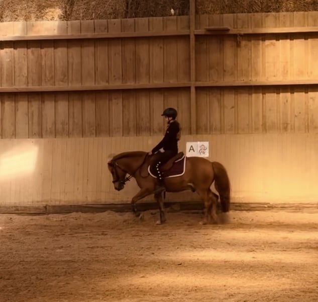 With a heavy heart, I am looking for a new home for my 10-year-old Icelandic gelding Bilbo. He is a 135 cm tall, solidly built chestnut gelding with a lot of presence and a strong personality. Bilbo is well-trained, three-gaited, moves nicely on the bit with good hands, has great jumping potential, and a lot of go. He enjoys hacking, loves trail rides and walks, and also works very happily from the ground – he knows many exercises and tricks. Bilbo has a strong personality and often tests his handler. Therefore, he needs a calm, experienced, and consistent owner who can show him kindly but firmly where to go. He is never mean, remains manageable, and communicates clearly, especially when working seriously with him or when challenged. In handling, he is very sweet, especially with children, dogs, and cats. He is a fun pony that you can do anything with. Currently, Bilbo lives in box stall with daily turnout in a herd of about 20 geldings. He is also familiar with open stalls, 24/7 outdoor turnout, and mixed herds. Health-wise, he is absolutely problem-free: he is regularly vaccinated, has never been ill or lame, and can be easily kept barefoot. Bilbo is located in the Kreis Kleve area and is being rehomed for personal reasons. It is very important to me to find an experienced, loving, and long-term home where his character is appreciated and his potential further nurtured. He could also be suitable for children or less experienced riders, provided there is another person to support and supervise him. Please feel free to contact me with questions or if you are interested.
