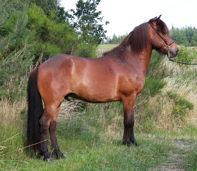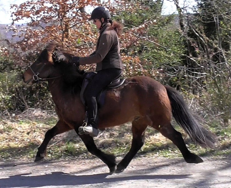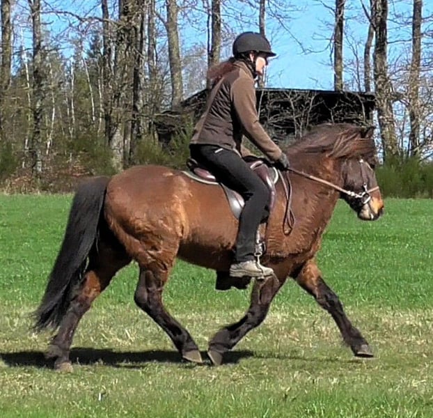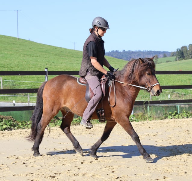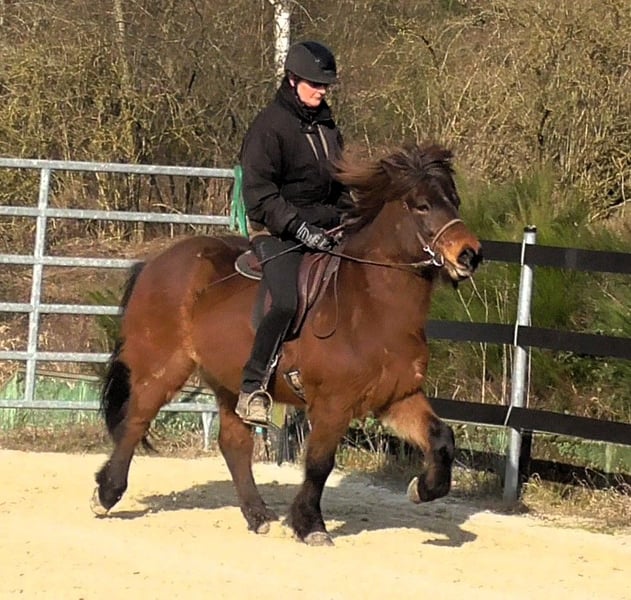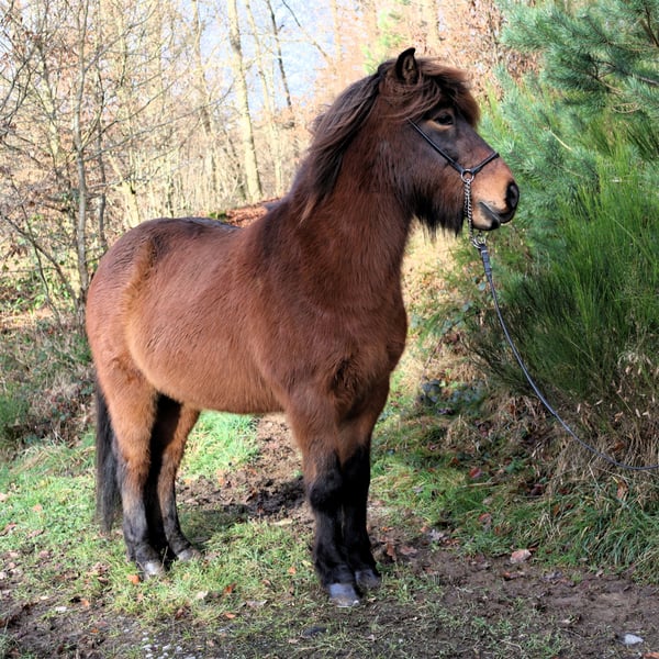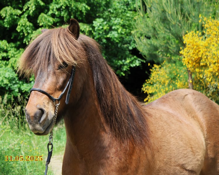 Limbó est un hongre poli, doré, aimant courir à 5 allures, avec de bonnes bases et des allures prometteuses. Né dans notre ferme et élevé dans le respect de l'espèce dans le troupeau d'étalons, il est aujourd'hui hongre de rang moyen dans un troupeau mixte et est bien toléré. Sa formation a commencé en été 22 et s'est poursuivie jusqu'à aujourd'hui en douceur, avec suffisamment de pauses. Limbó apprend très vite, est coopératif et veut faire plaisir à son maître. Qu'il s'agisse d'un manège, d'une piste ovale ou d'un terrain, il fait toujours preuve d'enthousiasme. Limbó serait un cheval optimal pour le sport des jeunes. De nombreuses photos et vidéos depuis son premier jour de vie, sont disponibles sur notre site Internet à l'adresse www.islandpferdehof-obersolbach.de/fotogalerie/limbó. Si vous êtes intéressé, n'hésitez pas à nous appeler.
