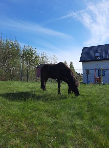 Z powodu redukcji stada sprzedam koni o imieniu Kruk. Kruk jest bezpiecznym koniem do jazdy w tereny, niczego się nie boi. Nie gryzie, nie kopie, uwielbia kontakt z człowiekiem. Specjalne chody do wytrenowania, ale został zajeżdżony przez osoby, które nie znały tej rasy, więc nie porusza się biegle w tölcie i inochodzie. Jest bardzo wygodny.