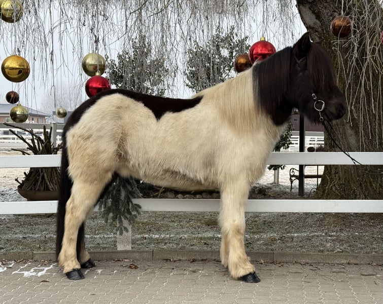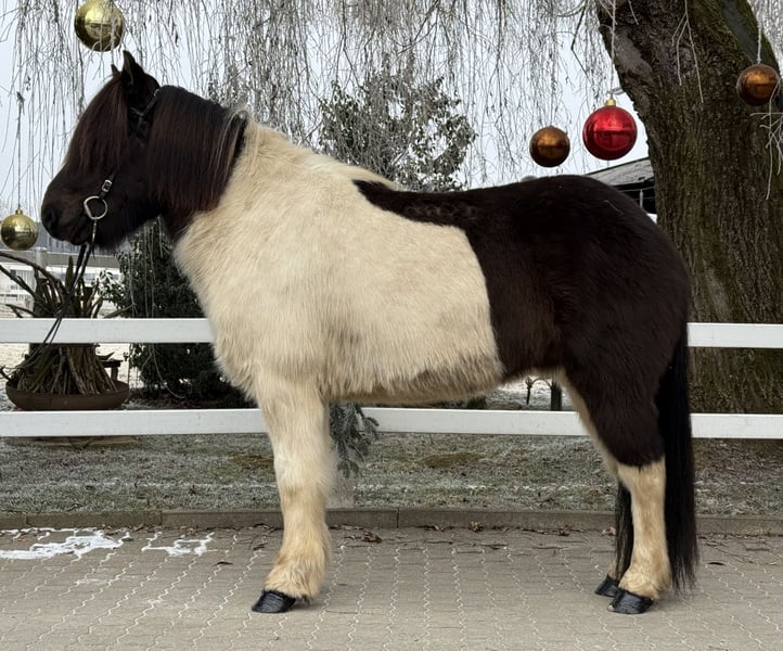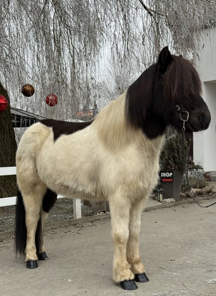 Klaki frá Miðsitju Gelding, 14.1 hh (1.45 m) *Born in Iceland in 2016 Four-gaited, with excellent movement Rapphino with plenty of feathering Has previous experience with children ✅ AKU including X-rays available ✅ VAT deductible ✅ Sire: Þristur frá Feti 8.27 (Ext. 8.14, Re. 8.35) Dam: Orri frá Þufu 8.34 (Ext. 8.08, Re. 8.61) Dam’s sire: Kotra frá Flekkudal Granddam: Otur frá Sauðárkróki 8.37 (Ext. 8.05, Re. 8.69) Klaki is an absolutely reliable partner – in daily handling, in the riding hall, on the lunge circle, and confidently and calmly in the terrain. He impresses with his balanced temperament and his calm, honest nature. He has four clearly distinguishable gaits. Especially noteworthy is his very easy-to-ride tölt and his "swinging" canter. The tölt is comfortable to sit, easily responsive, and so straightforward that even less experienced riders can tölte confidently. You could say that Klaki has almost endless tölt, which provides immense joy and comfort. His canter is also particularly remarkable, as it is so smooth and well-sprung that even the smallest riders can sit and ride it effortlessly. Thanks to his confident nature, this beautiful pinto is the ideal family horse or beginner’s horse – suitable for children as well as adults up to dad. He always provides his rider with a high level of safety and trust, making every riding session a relaxed experience. We are aware that, for a gelding, pedigree is not usually relevant for breeding. Nevertheless, we want to mention Klaki’s highly verified lineage, as his top-tier pedigree clearly demonstrates what an incredible riding horse he is. An entirely honest, relaxed gelding for everyone seeking a reliable and comfortable Icelandic horse for enjoyment and as a teaching partner. Klaki has already reliably carried children and, due to his patient nature, is also suitable for therapeutic riding. Anyone interested in meeting and trying out this beautiful gelding is welcome to arrange a visit with us in A-5221 Lochen am See.
