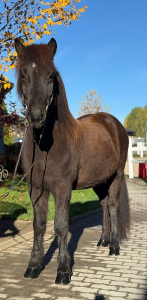 Spyrnir frá Álfhólum Gelding, 14.1 hh, born in 2013 in Iceland Four-gaited Free of eczema Vaccinated, shod, and dewormed ✅ Sire: Íkon frá Hákoti 7.98 (Ext 7.80, Re 8.10) Dam: Töfri frá Kjartansstöðum 8.45 (Ext 8.29, Re 8.55) ‼️ Granddam: Spyrna frá Vorsabæ II 7.85 (Ext 7.85, Re 7.84) Great-granddam: Snjall frá Vorsabæ II 8.31 (Ext 8.18, Re 8.40) ‼️ This stunning black gelding captivates not only with his solid build and distinctive star but also with his friendly nature. He is a reliable partner you can always count on. Under saddle, he impresses with four clearly separated gaits: an easy-to-ride tölt that is simply fun, a lively trot, an uphill, powerful canter, and a relaxed, comfortable walk that invites you to breathe easy. He is familiar with indoor arena, round pen, and oval track, and enjoys lunging, showing attentiveness and eagerness to learn. However, his heart truly belongs to trail riding – here, he truly blossoms and happily tölts through the terrain. In everyday handling, he is an absolute gem: he knows double-stall and herd life, is uncomplicated, social, and always friendly. A horse you simply have to like – with a temperament that provides calm, joy, and makes each day a little brighter. Spyrnir can be visited and tested at any time by arrangement at our place in A-5221 Lochen am See.