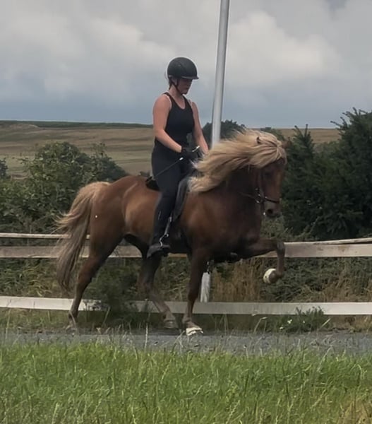 Hyllir frá Dverghamri ist ein 2013 geborener großer Fuchswallach. Er verfügt über einen sehr schönen Tölt in allen Tempi, mit dem er sofort in T3/T4 einsetzbar wäre. Sein Galopp ist gut gesprungen, sein Trab ist sicher mit weiten Bewegungen und er steht immer fein an den Hilfen. Er hat viel Lauffreude, ist aber bei routinierten Reitern immer problemlos zu regulieren und bringt immer einen tollen Arbeitswillen mit. Im Gelände ist er sowohl alleine als auch in der Gruppe zuverlässig. Charakterlich ist er einfach unkompliziert, sehr höflich im Umgang und auch in der Herde sehr leicht zu integrieren. Hyllir ist für alle Reitabzeichen sehr gut einsetzbar und auch für Trainerlehrgänge gut geeignet. Auch kann ich mir ihn gut als Jugendsportpferd vorstellen. Da ich ihn leider aus persönlichen Gründen abgeben muss, suche ich ein bestmögliches zuhause für ihn. Er ist gesund, ekzemfrei und absolut schmiede- und verladefromm. Weitere Infos und Videos auf Anfrage.