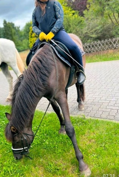 11 Jähriger Isi Konik Mix, 1.51m gross, Rappfalbe in allerbeste Hände abzugeben. Unser Schoki geht gerne ins Gelände und ist alleine und in der Gruppe super unerschrocken. Er kennt Hauptverkehrsstrassen und ist Trubel gewöhnt. Auf dem Reitplatz und in der Reithalle kommt leider sein Ponykopf durch. Wer hier gut reiten kann hat keine Probleme, dann läuft er artig an den Hilfen um die Runde. Bei Anfängern bleibt er gerne stehen. Im Gelände ist er wie eine Lebensversicherung und passt auf sein ReiterIn auf. Rassetypisch sehr sitzbequem. Schoki steht bei uns im Offenstall und auf der Weide. Box kennt er auch, findet er manchmal kurz auch gut. Im Umgang ist Schoki auch brav und unerschrocken, aber hat auch hier gerne mal ein Ponykopf wenn er was schönes zu Essen sieht. Sofern man sich gut durchsetzen kann und die dominantere Persönlichkeit hat, hat man keine Probleme. Wir wünschen uns Jemanden der erfahren ist, wo er in einem Offenstall leben darf und viel ins Gelände darf. Nicht als Kinderpony geeignet. Auf keine Fall Turniere. Im Umgang mit anderen Pferden ist er sehr lieb und unkompliziert bei uns. Aus persönlichen Gründen, nur in allerbeste Hände abzugeben.