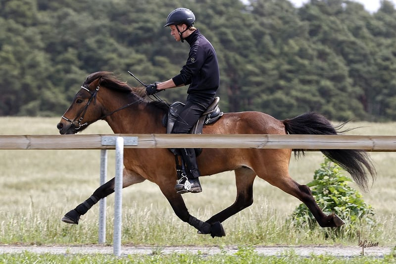 Ægir is een vriendelijke en gemotiveerde IJslandse ruinermerrie met een aangename voorwaartse instelling – ideaal voor recreatief rijden en wedstrijden. Ze is absoluut braaf en betrouwbaar en komt uitstekend overweg met verschillende ruiters. Of het nu op het rijterrein, in het terrein of op de piste is – Ægir doet altijd enthousiast mee en brengt haar ruiter veel plezier. In het terrein toont ze zich zelfverzekerd en zenuwvast: verkeer, landbouwwerktuigen of fietsen brengen haar niet uit balans – een echt betrouwbaar paard! Dankzij haar degelijke opleiding en haar duidelijke karakter is Ægir ook perfect als trainingspartner voor jongeren of ruiters die het passen willen leren en willen starten op wedstrijden. Eveneens is Ægir een lieve, betrouwbare vriend voor ontspannen buitenritten in de natuur – altijd gemotiveerd, alert en betrouwbaar onderweg. Daarnaast is Ægir “scheckheftgepflegt”: ze wordt regelmatig gereden en vakkundig beslagen, is wedstrijdervaring en toont zich ook bij het laden en op langere trailerritten – zelfs alleen – volkomen probleemloos. Ze is gevaccineerd en haar tanden worden regelmatig gecontroleerd en verzorgd door een gespecialiseerde dierenarts voor paardentandheelkunde. Ægir is het ideale paard voor iedereen die op zoek is naar een betrouwbaar, gemotiveerd en veelzijdig IJslands paard – een partner die zowel op het wedstrijdterrein als bij ontspannen buitenritten in de natuur enthousiasmeert.