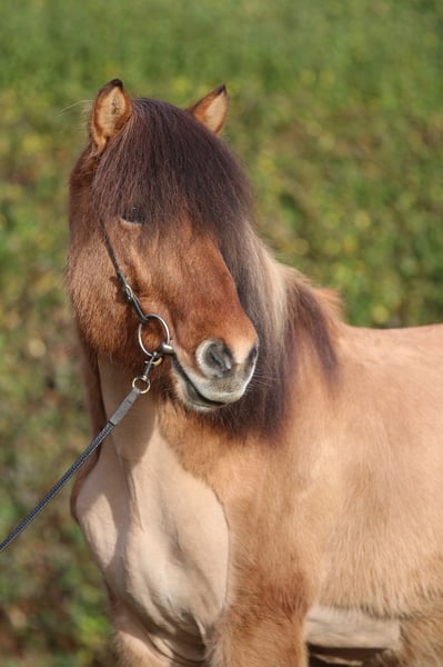 Keilir vom Kastanienwald – DE2013163919 Sire: Kraftur vom Heesberg – 8.22 Dam: Sif frá Bergstöðum Dam Sire: Kolgrímur frá Kjarnholtum I – 8.23 - Gentle - Large - Calm - Experienced - Fearless - Slightly Temperament - Attractive - No Eczema - Traffic-Safe Keilir is a large, friendly, and gentle gelding. Born and raised in Germany in 2013, he is an absolute treasure! He has everything a rider could wish for. He is tall, kind, talented, fearless, and has beautiful, clearly separated gaits. His temperament is calm, he remains unshaken, and always stays close to his rider. He moves with well-separated gaits, including a lot of tölt. Keilir is attentive and human-oriented. He enjoys attention and cuddles but never gets too close. He is polite and curious. Keilir has participated in several competitions; he was fearless and very well controllable. His highest scores were 5.70 in the four-gait test V5 and 5.50 in the tölt test T4. We do not necessarily see Keilir as a sport horse, as he lacks some temperament for high-level competition. Instead, we see him as an excellent leisure horse for calm, enjoyable rides. Keilir is a real ladies' man; tall, charming, with beautiful long legs and irresistible eyes. He suits many people – including beginners, children, or more cautious riders. For videos or further information, please contact us! Height at withers: 1.45 m More sale horses: https://www.heidberghof.info/islandpferde/verkaufspferde/
