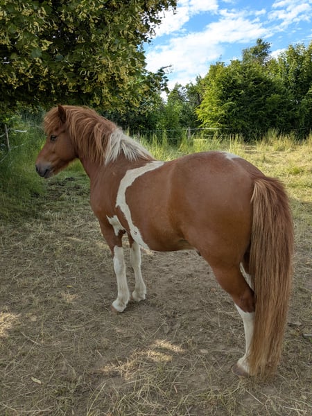 Sehr schweren Herzens suche ich für meinen Islandwallach einen Lebensplatz. Er steht bei mir mit 5 Stuten zusammen und verträgt sich da mit allen. Er kann nicht in einer gemischten Herde stehen. Er benötigt eine reine Wallachherde oder muss in einer Stutenherde, der einzige Wallach sein. Zu Beginn deckt er, lässt das aber nach der ersten Aufregung sein. Bei mir herrscht Ruhe in der Herde und er springt auf keine mehr auf. Er lebt hier im Offenstall, im Sommer mit Dauerweide. Er ist geritten. In den Wintermonaten ist er jedoch nahezu unreitbar. Im Sommer klappt es in der Regel, aber leider sind auch da "Aussetzer" möglich. Er bockt aus dem Nichts heraus. Er ist am Boden gearbeitet (TGT). Auch da testet er im Winter die Grenzen. Er lässt sich sehr gern putzen und schmust auch gern. Das eine Foto ist mit mir in meiner letzten Schwangerschaft entstanden. Ich wollte ihn behalten. Aus gesundheitlichen Gründen, suche ich nun einen Lebensplatz für ihn. Ich suche einen Platz wo er einfach Pferd sein kann oder sich jemand der Herausforderung ohne Erwartungshaltung stellen möchte. Da er schon einmal verkauft war und ich ihn vor 2,5 Jahren zurück geholt habe, suche ich jetzt einen Endplatz, wo dauerhaft auf seine Einschränkungen Rücksicht genommen werden kann.