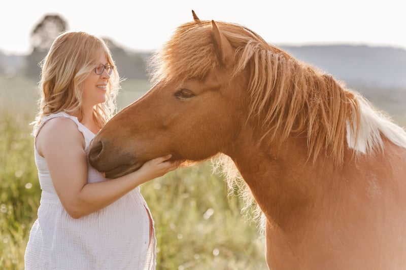 With a heavy heart, I am seeking a lifelong home for my Icelandic gelding. He currently lives with five mares and gets along well with all of them. However, he cannot be kept in a mixed herd. He requires either a herd of geldings or to be the only gelding in a herd of mares. Initially, he may attempt to breed, but he quickly loses interest after the first excitement. My herd is calm, and he does not escalate conflicts with others. He lives here in an open stable with year-round pasture access during the summer. He has been ridden, but during the winter months, he is almost unrideable. Usually, riding is possible in the summer, but occasional "blips" can occur, and he may buck unexpectedly. He has been ground-trained (TGT) and sometimes tests boundaries during winter work sessions. He enjoys grooming and being pampered; he also likes cuddling. One of the photos was taken with me during my last pregnancy. I initially wanted to keep him, but due to health reasons, I am now looking for a permanent home for him. I am seeking a place where he can simply be a horse or where someone open to a challenge without expectations can care for him. Since he was previously sold and I re-acquired him 2.5 years ago, I am now looking for a final, long-term home where his limitations can be consistently accommodated.
