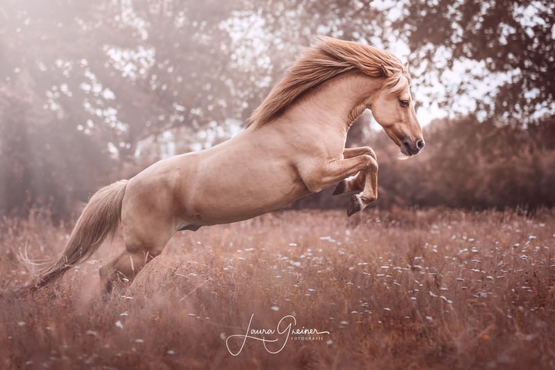 Super elegancki wszechstronny koń z ogromnym potencjałem na wysokie zawody Máni frá Hrafnkelsstödum IS2012136873 Máni to niezwykle elegancki, 1,42 m wysoki wspaniały potomek rasy Galsi, pięciobiegowiec w efektowym, specjalnym kolorze: ogier rudy z gwiazdą na czole. Do końca 2024 roku był ogierem, ma na swoim koncie 20 wspaniałych potomków, w tym kilka elitarnych źrebiąt. Máni to absolutny wszechstronny koń, jak z obrazka: - skacze ponad 1,30 m - Futurity czterobieg (5-letni): 6,9 punktu - FIZO we wszystkich chodach 8,0 (przedstawiany jako czterobiegowiec) - uwielbia galopować na lonży przez las - zawsze jest posłuszny i reaguje na pomoce (nie jest to koń dla początkujących!) Máni bez problemu porusza się zarówno w terenie z przodu, jak i z tyłu. Zna wszystkie podstawowe ćwiczenia ujeżdżeniowe i jest bardzo lekko reagujący na pomoce. Z powodu mojej ciąży niestety stałem się dla niego zbyt ciężki, a ostatecznie był dla mnie trochę za mały (mam około 1,90 m wzrostu). Mogę sobie wyobrazić Máni jako świetnego partnera dla dobrze jeżdżącego młodzieńca lub juniora, który chce zdobywać nagrody na zawodach lub planuje udział w DJIM. Jego najwyższa ocena to 7,0 w Tölt, Galopie i Trakcie, oraz 6,5 w Kłusie. Był już kwalifikowany do F1, jednak czasami jego chód pasowy jest nieco czterotaktowy, dlatego widzę jego potencjał bardziej w V1 i T1. Jako luksusowa końcówka rekreacyjna również byłby idealny. Máni ma dobre usposobienie, jest zawsze pracowity i uwielbia być aktywny i pracować. Máni jest regularnie (na zawody) odrobaczany, szczepiony, pokazywany u kowala, osteopaty i stomatologa. Obecnie jest nieaktywny treningowo, ponieważ byłam w ciąży. Po rozpoczęciu treningów cena wzrośnie. Lokalizacja: 49832 Thuine