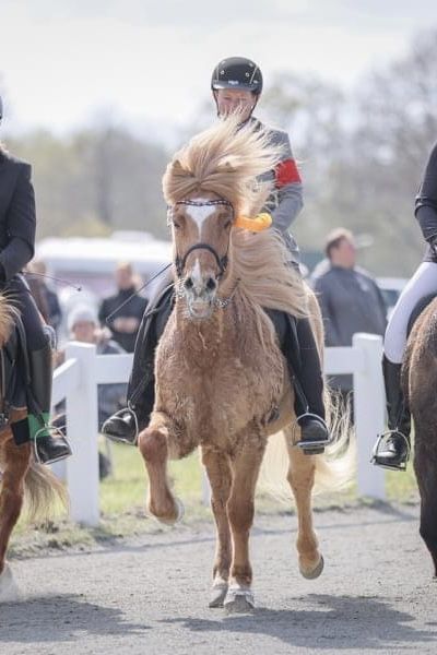 Stapi est un hongre alezan à quatre allures, très grand et imposant, qui impressionne surtout par son Tölt exceptionnel. Il s’était qualifié dans la catégorie T2 pour la classe de performance 1 et a obtenu à plusieurs reprises plus de 7 points en note globale lors de cette épreuve, recevant souvent 7,5 points pour une allure ou une transition de rênes à volonté. Son Tölt est vraiment extraordinaire, et il est possible de faire 10 tours de transition de rênes si l’on veut ! Même un Tölt à grande vitesse ne lui pose aucun problème. Stapi possède également de bonnes, sûres et expressives allures de base, bien qu’il ait été un peu moins performant en V2, car son pas n’était pas toujours parfaitement réactif. Actuellement, il est monté par une jeune fille de 15 ans, qui a beaucoup travaillé sur sa tranquillité, ce qui a récemment permis d’obtenir une note de 6,5 pour le pas. Il ne reste donc plus qu’à obtenir de bons résultats en quatre-temps. Elle a déjà remporté une fois et été deux fois vice-championne lors de deux participations à la T4. Stapi est un cheval un peu particulier, ce qui se manifeste par une certaine méfiance en dehors du box : il n’est pas toujours facile à attraper dans le paddock, et il n’aime pas les mouvements rapides au niveau de la tête. Cependant, il vient toujours joyeusement à son cavalière Hanna. Sous la selle, c’est un cheval vif qui nécessite un cavalier calme, capable d’apprécier ses grands mouvements et le rythme qu’il génère, sans toujours freiner. Il est parfaitement lucide, prend beaucoup de plaisir en extérieur et gère sereinement des sorties en club avec 20 autres chevaux. Il ne Tölt que lorsqu’il y a déjà galop dans le groupe… (c’est vraiment divertissant !) En compétition, il donne toujours le meilleur, s’adapte rapidement à de nouveaux lieux et peut commencer directement la reprise sans avoir besoin de lui faire visiter la piste, car il est un vrai routinier. Stapi est arrivé d’Islande il y a plusieurs années, fils du légendaire Ómur frá Kvistum, qui a produit de nombreux chevaux de sport et de reproduction de grande qualité. Il est maintenu toute l’année en pâture, en parfaite santé, et n’est absolument pas sujet à l’eczéma. Il n’a jamais été monté ou couvert. Souhaitant réduire ma troupe, je propose Stapi à ce prix très raisonnable. Je recherche pour lui un cavalier sensible, qui accepte ses particularités telles qu’il est, voire qui les apprécie. Il représente également un cheval idéal pour un jeune talentueux souhaitant faire ses premiers pas en compétition, avec la possibilité de réussir et de progresser avec lui. Sa cavalière actuelle possède malheureusement déjà un bon cheval, c’est pourquoi je cherche pour Stapi le cavalier qui lui correspondra.