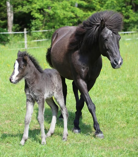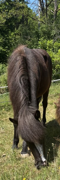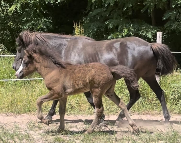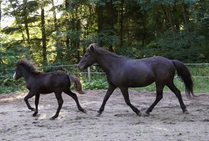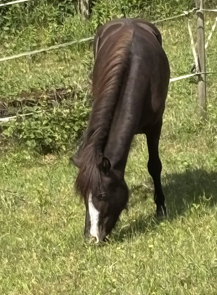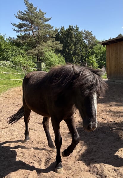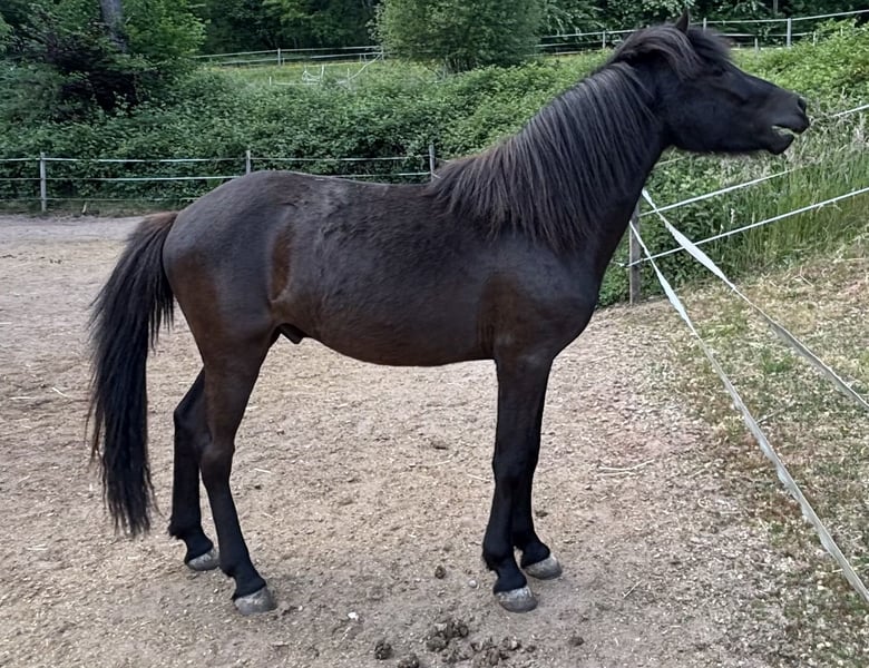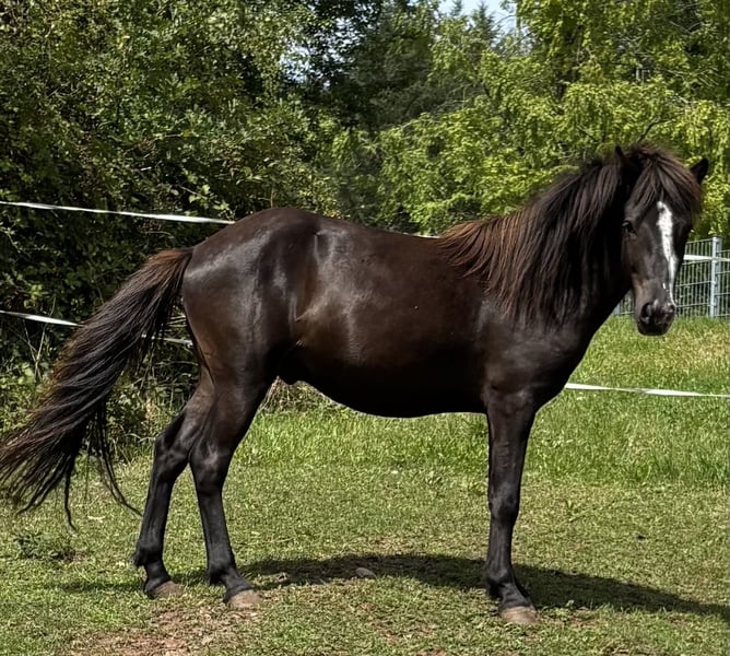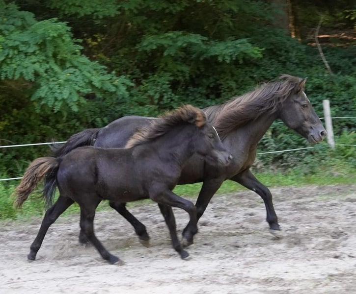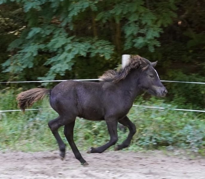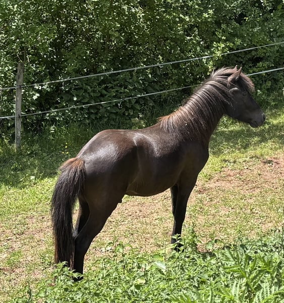 Oskar, geb. 5/23, ein Rappe mit tollem Abzeichen sucht ein schönes Zuhause mit Gesellschaft und Koppelgang. Er ist korrekt gebaut und fünfjährig veranlagt. Seine Gänge sind locker und klar getrennt. Er läuft einen sicheren taktklaren Tölt und einen sicheren Trab und Galopp. Manchmal zeigt er auch Rennpass. Er ist sehr zutraulich und hat schon im Alter von 4 Monaten am Halfter Spaziergänge gemacht. Oskar war auf einer großen Weide und ist sehr gut sozialisiert. Sein Vater ist im Hengstbuch 1 eingetragener Prämienhengst. Seine Mutter ist im Stutbuch 1 eingetragen und ist eine tolle leistungsfähige Stute mit schönen Bewegungen. Ich freue mich auf ihre Anfragen, gerne auch telefonisch.