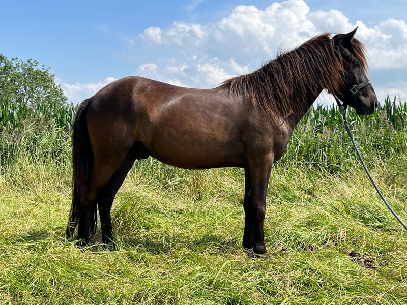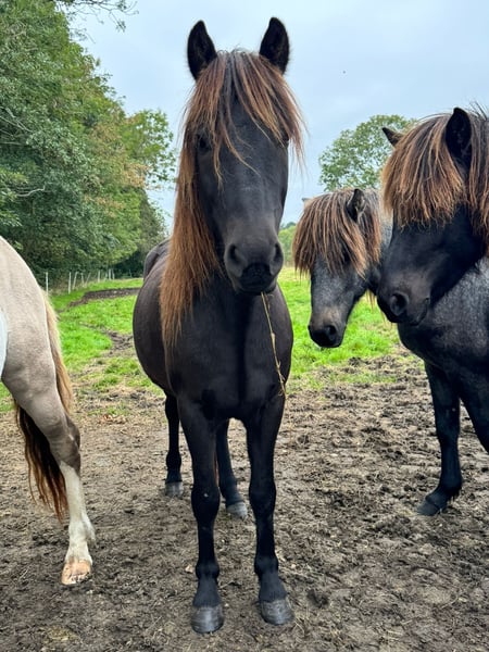 Blómi von Eldhólar (DE2021122997) V: Skarði vom Vindstaðir (Zuchtweltmeister, 8,22 ges.) M: Blíða von Eldhólar MV: Þórarinn frá Oddhóli (8,17 ges., u.a. Bis 6,67 in F1) Blómi ist ein absolut freundlicher, kleiner Fünfgangwallach, der einem das Herz aufgehen lässt! Er ist in jeder Lebenslage für seine vier Jahre sehr cool und gelassen und bildet einen Ruhepol in seiner Junghengstherde. Er zeigt alle 5 Gänge mit sehr guter Qualität, damit sieht man später auf Turnieren bestimmt auch nicht schlecht aus! Blómi kann alles, was man mit drei Jahren können muss (Aufhalftern, Führen, Hufschmied, Tierarzt, etc.) Wenn er ausgebildet ist, wird er bestimmt das perfekte Kinder-/Familienpferd, er ist einfach so brav und liebt es Menschen um sich zu haben, die sich mit ihm beschäftigen, ohne dabei aufdringlich zu werden! Da er eher etwas kleiner ist (ca. 1,33m) kommt er vermutlich eher für zierliche Erwachsene oder Kinder/Jugendliche in Frage. Er ist aber mit seinen 4 Jahren natürlich auch noch nicht voll entwickelt! Aktuell steht er noch in einer Junghengstherde in der Nähe von Cuxhaven und kann nach Absprache besichtigt werden. Auf Wunsch besteht auch die Möglichkeit, dass ich Blómi noch ausbilde und auf seine neue anstehende Aufgabe perfekt vorbereite! Ich bin gelernte Pferdewirtin Spezialreitweisen und IPZV Trainer C, arbeite seit langer Zeit als Islandpferde Trainerin und habe mich auf die Jungpferdearbeit spezialisiert. Leider hatte Blómi im Frühjahr eine Verletzung durch ein stumpfes Trauma an einem Auge, er kann sehen, aber es ist nicht 100% klar, wie es in Zukunft aussehen wird. Es ist aber tierärztlich bestätigt, dass normal nutzbar sein wird, man könnte ihn also anreiten und als Freizeitpartner fertig machen. Deswegen wird er aber weit unter Wert abgegeben!! Tierärztlicher Bericht zum Befund des Auges liegt vor. Bei Fragen etc einfach gerne eine PN schreiben! Es handelt sich hier um einen Privatverkauf!