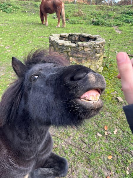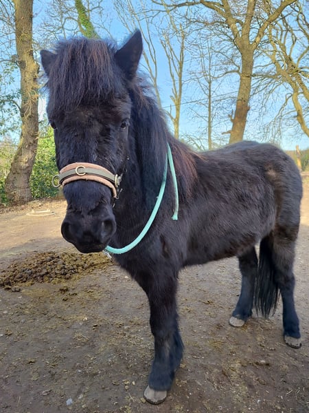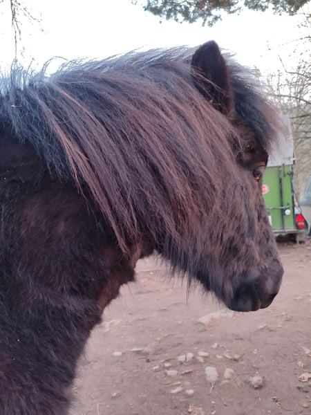 Askur ist ein eher kleinerer dänisch gezogener Wallach mit einer tollen Abstammung. Sein Vater Farsæll vom Hrafnsholt ist ein WM-Teilnehmer, der wiederum von Depill frá Votmula abstammt. Die Abstammung sieht man auch an seinem Tölt, den er in allen Tempi zeigt - von bequem und flach bis hochweit. Trab ist daneben auch vorhanden. Geb 2022 Tiefschwarzer Rappe mit Mega Behang Askur kennt regelmäßige Hufbearbeitung, etwas Bodenarbeit und kleine Spaziergänge, auch alleine, ins Gelände und an der Landstraße entlang. Dabei sind ihm auch Trecker, Wohnmobile, Anhänger, Fahrräder, Motorräder usw begegnet, was er inzwischen gelassen meistert. Aufgrund seines Alters und der Winterpause muss natürlich alles noch gefestigt werden. Neue Dinge findet Askur kurz (Sekunden) gruselig, dann geht er vom selbst neugierig darauf zu, untersucht sie und hat sie anschließend als ungefährlich abgespeichert. Grundsätzlich ist er nicht der sensible Typ, eher derjenige, der gerne diskutiert. In der Herde ist er ranghoch, spielt jedoch auch sehr gerne und fair. Ich suche einen erfahrenen Menschen, der bestimmt aber freundlich Grenzen setzen kann. Die Mutter war so, dass sie alles für ihren Menschen gemacht hat - aber nur für diesen. Er ist gegen Tetanus, Influenza und Pilz geimpft und wurde 3x/Jahr entwurmt. Leider juckt er sich immer mal wieder - eine Diagnose haben wir jedoch dafür nicht, da es etwas unspezifisch ist. Seine Eltern sind ekzemfrei. Er ist mein Traumpferd, den ich als Privatperson extra aus Dänemark importiert habe. Leider zwingen mich familiäre Gründe (Kind wurde zum Pflegefall) zu diesem Schritt. Nur in Offenstallhaltung und Wallachherde Platz vor Preis