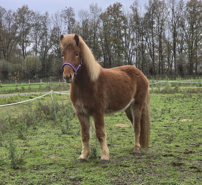 NL2022100190 - Gungnir frá Gróskuholti 4-jarige zeer grote ruin, vos met kol Vader: IS2011155574 - Mjölnir frá Bessastöðum (hooggekeurde IJslandse hengst met een 9 voor tölt, draf, telgang en karakter!! ) BLUP eindcijfer 107, met 112 voor telgang! Vader v vader: IS2002187662 - Álfur frá Selfossi (van IS1986186055 - Orri frá Þúfu í Landeyjum) (zeer hooggekeurde IJslandse hengst) BLUP eindcijfer 114, met 111 voor tölt en karakter! Gungnir wordt 4 jaar in mei en meet al ca. 1,42!! Hij zal nog verder doorgroeien en een grote ruin worden, met mooi behang. Hij is sterk gebouwd en een gewichtsdrager voor de toekomst, ook voor de grotere langere ruiter. Wij noemen hem de Grote Vriendelijke Reus, hij heeft een vriendelijk en lief karakter, komt altijd naar je toe voor een knuffel, is heel handzaam, is niet dominant en staat eerder onderaan in de kudde. Hij is braaf bij de hoefsmid en wordt regelmatig bekapt, jaarlijkse tandartscontrole doet hij braaf, hij wordt regelmatig ontwormd, entingen zijn op orde. Hij kent vaststaan, houdt van poetsbeurten en aandacht. Hij is makkelijk op de trailer, loopt altijd keurig mee aan het halstertouw. In de wei laat hij regelmatig z’n mooie gangen zien. We zoeken voor hem iemand die samen met hem verder wil groeien en met hem gaat beginnen aan zijn opleiding als hij uitgegroeid is. Gungnir heeft potentie voor de sport, gezien zijn afstamming en bouw, maar kan ook als luxe recreatiepaard zijn toekomst tegemoet gaan. Gungnir heeft geen eczeem. Vraagprijs voor Gungnir is 8.000,- euro. Wil je deze Grote Vriendelijke Reus met eigen ogen komen bewonderen of meer informatie? Neem dan contact met ons op via het contactformulier of email jockeylin@planet.nl